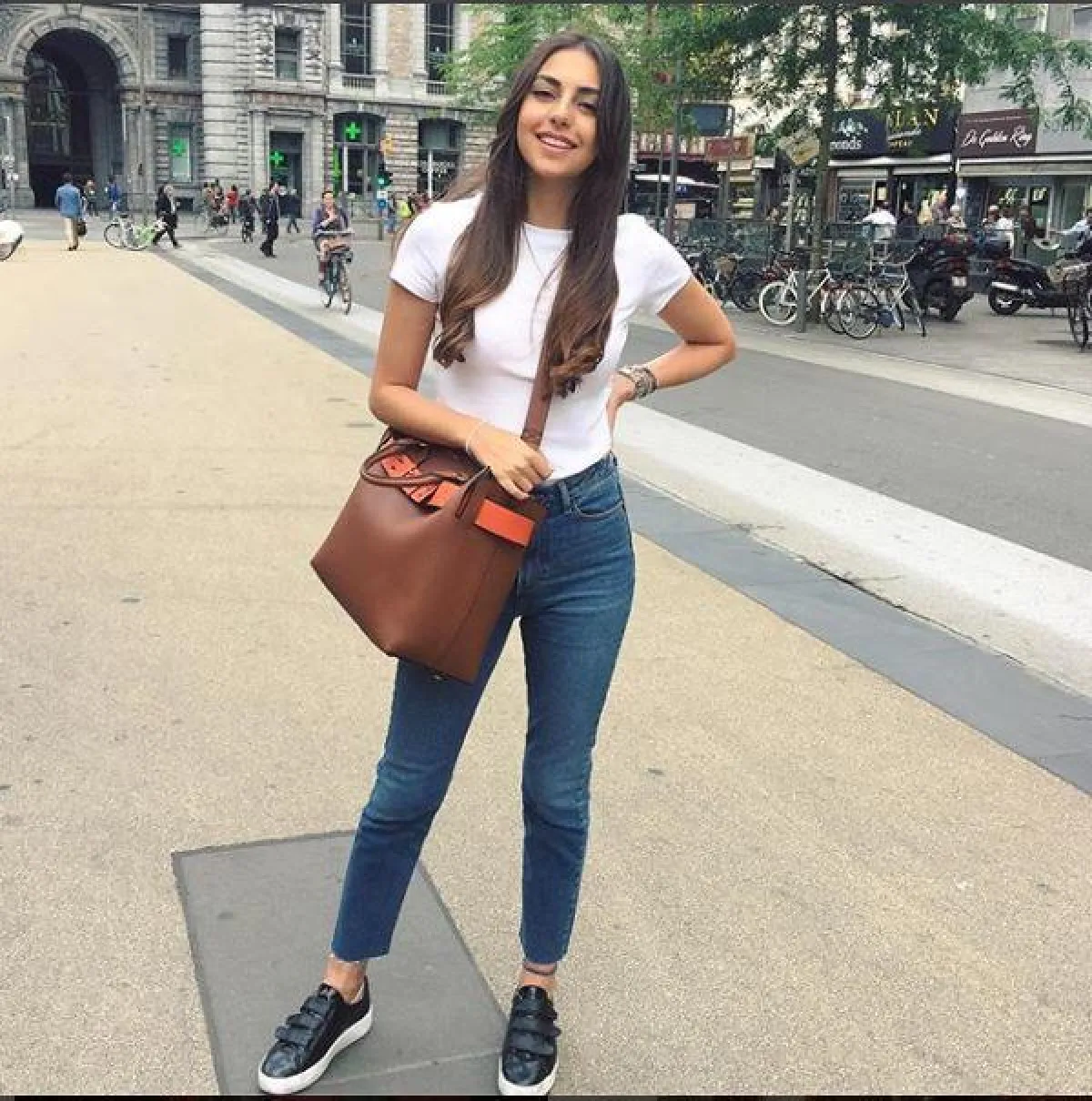 كذلك هي تميل لارتداء القطع المُترفة، حتى لو كان الأمر يتعلق بنزهة نهارية بسيطة، مثل اللوك من الجينز عالي الخصر، والتيشرت الأبيض، والحقيبة البنية كبيرة الحجم.
