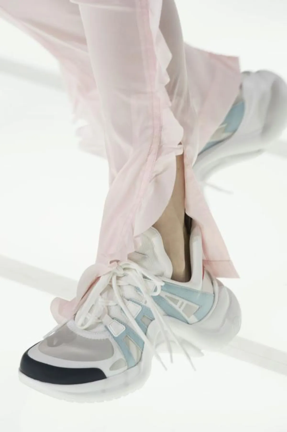 التصميم المُختلف من Louis Vuitton لويس فويتون بالكوتشي الرياضي مع كعب مٌتموج، يبدو أنه سيكون خيار الكثير من الفاشنيستات هذا العام، لإطلالة عصرية ومريحة في نفس الوقت، والذي يناسب أكثر العبايات بالألوان الحيادية مثل الأبيض، ونتوقع أنه سيكون خيار الفاشنيستا آسيا الأول، لأنه يعبر عن ذوقها عندما يتعلق الامر بتنسيق الأحذية.