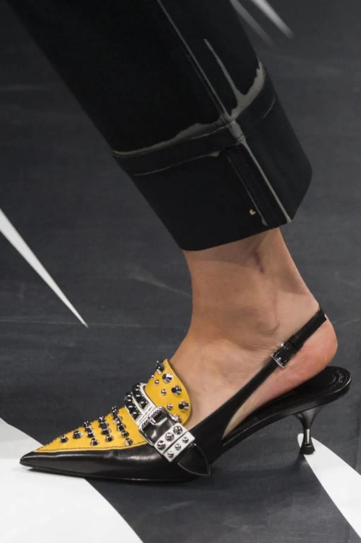 أعجبنا التصميم من Prada برادا بالكعب المنخروطي، الذي يتربع على عرش الموضة هذا العام، يمكنكِ اختياره مع عبايتكِ الصيفية بخامة الكتان سواء كانت باللون الأسود، لتضيفي لها بهجة الأصفر المُشرق، والتي تناسب الأجواء النهارية، او أوقات العمل.