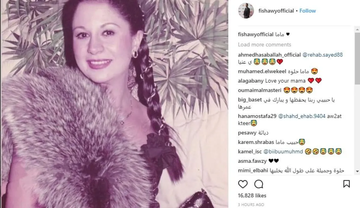 كشف الفنان أحمد الفيشاوي عن صورة نادرة لوالدته الفنانة "سمية الألفي" في شبابها، معلّقًا عليها بقوله "ماما"، وبدت النجمة الشهيرة في الصورة في غاية الجمال والأناقة، بحسب تعليقات محبي الفنان الشاب والمتابعين عبر حسابه الرسمي على موقع التواصل الاجتماعي انستقرام، الذين أشادوا بجمالها معلقين بأنها من أجمل فنانات الزمن الجميل.