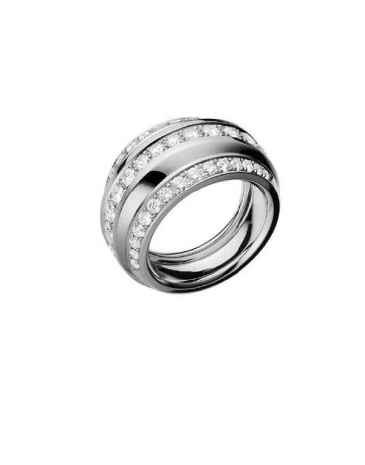 كذلك أبدعت دار شوبارد Chopard في تقديم تشكيلة واسعة من الخواتم الماسية منها هذا الخاتم المصنوع من الذهب الأبيض عيار 18 قيراطاً والمرصّع بشكل جزئي بحبات الألماس، والذي قدّمته الدار ضمن مجموعة لاسترادا La Strada الغنيّة.