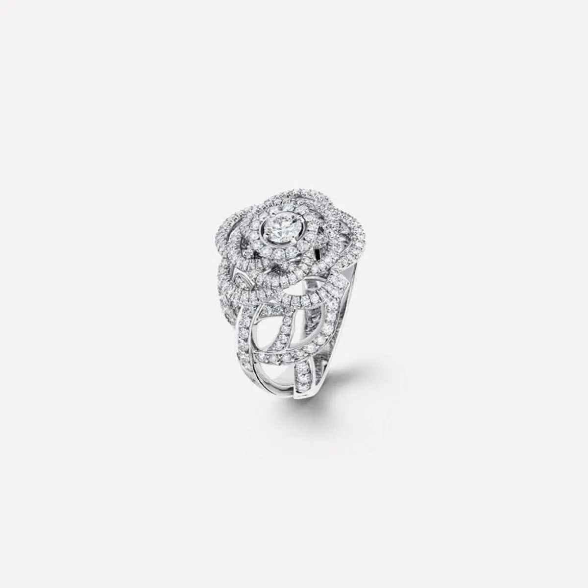 ومن أبرز دور المجوهرات العالمية التي قدّمت مجموعة واسعة من الخواتم الماسي، دار بياجيه Piaget العريقة التي أتحفتنا بهذا التصميم الغني من مجموعة بياجيه روز Piaget Rose وهو خاتم مصنوع من الذهب الأبيض ومرصّع بالكامل بأحجار الماس البيضاء.