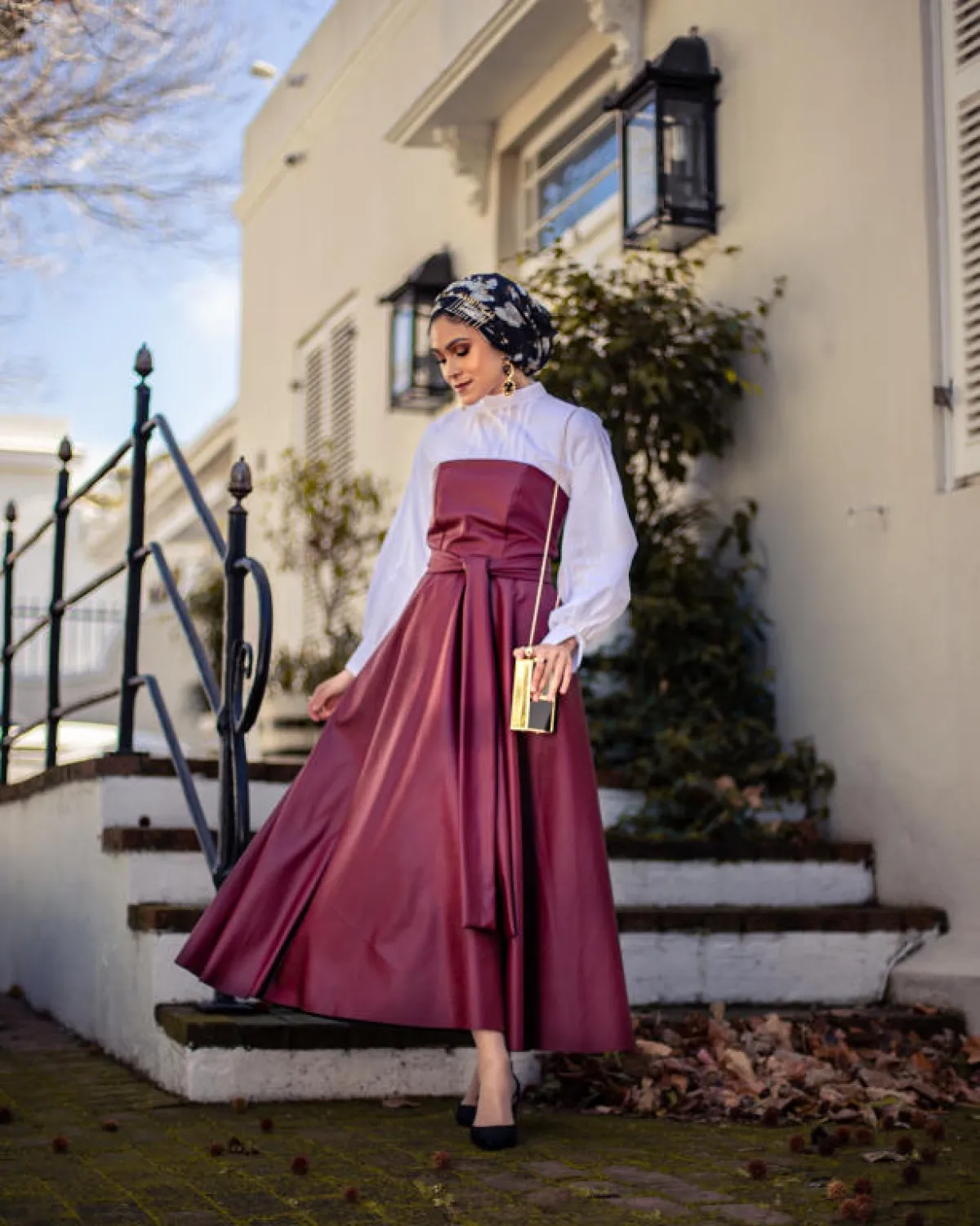أما إذا كنت تحضرين لحضور حفل خطبة أو زفاف وترغبين في لفة حجاب مميزة، فـ الفاشينيستا نبيلة كريم قامت بلف الطرحة بستايل التوربان، ولكنها جعلت جزءاً منها منسدلاً على أحد الجوانب. إنها لفة بسيطة للغاية ولن تستغرق منك مجهوداً كبيراً.