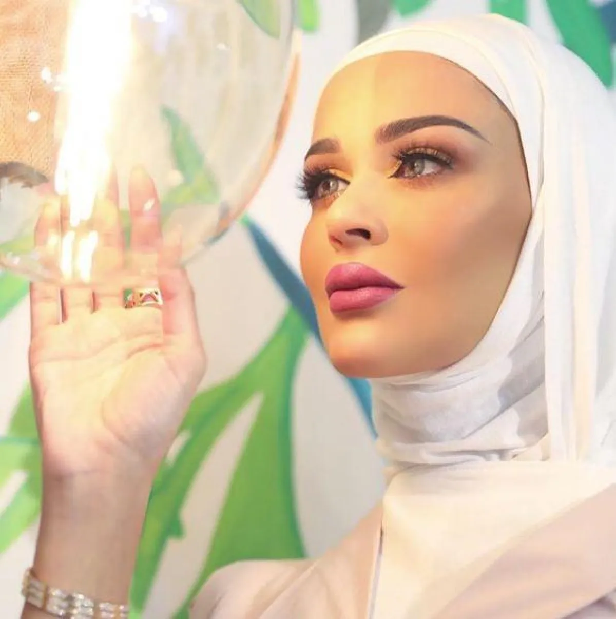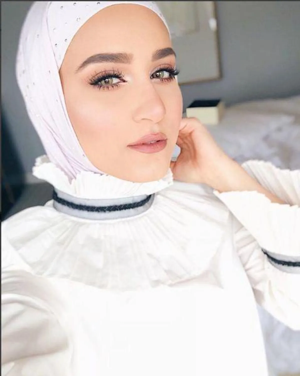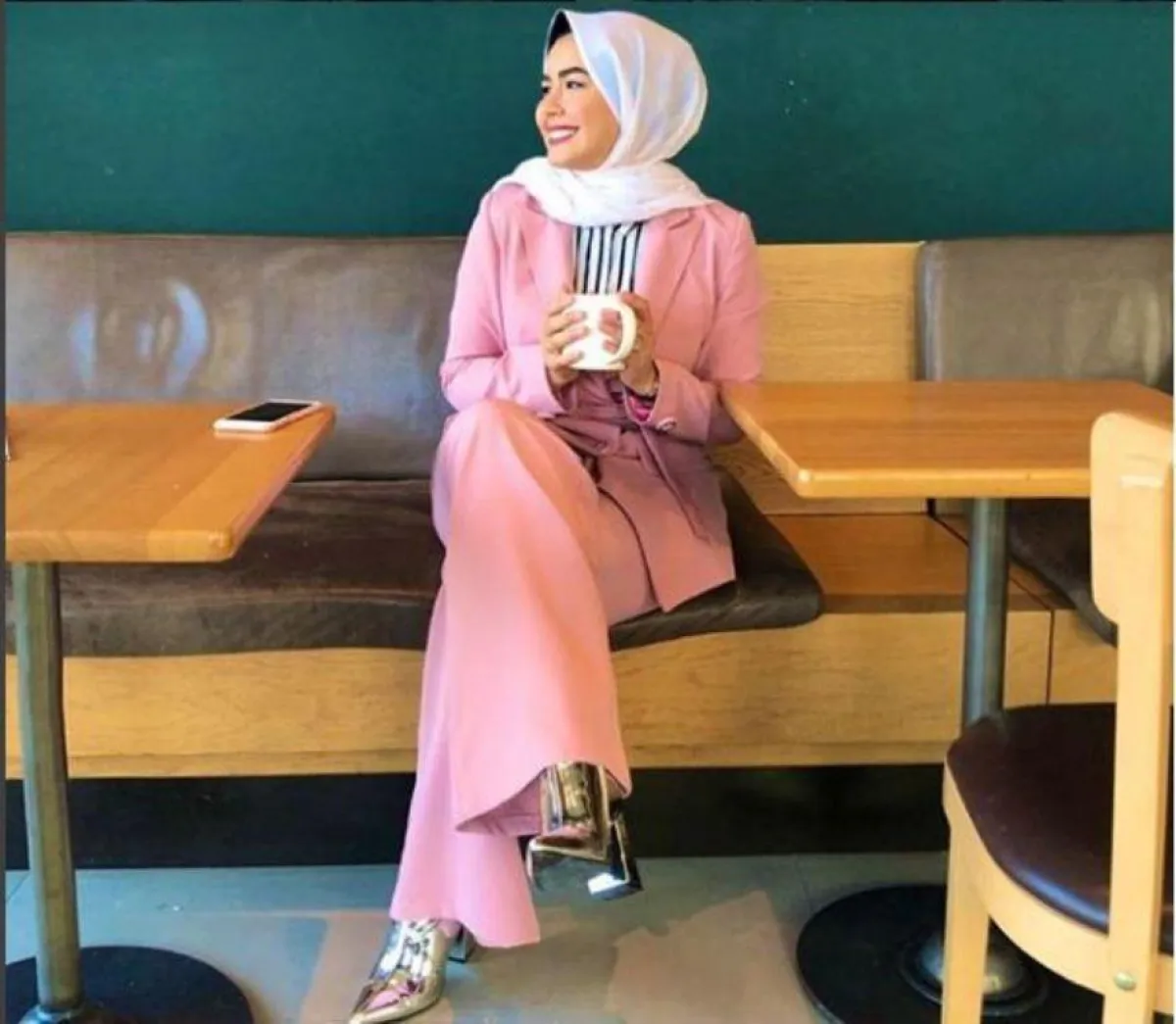 الفاشنيستا الكويتية وخبيرة المكياج سندس القطان لاتخلو خزانتها من الحجاب باللون الأبيض، ولكنها في بعض الأحيان تعتمد الألوان الترابية التي تناسب بشرتها، ومكياجها المخملي الناعم.