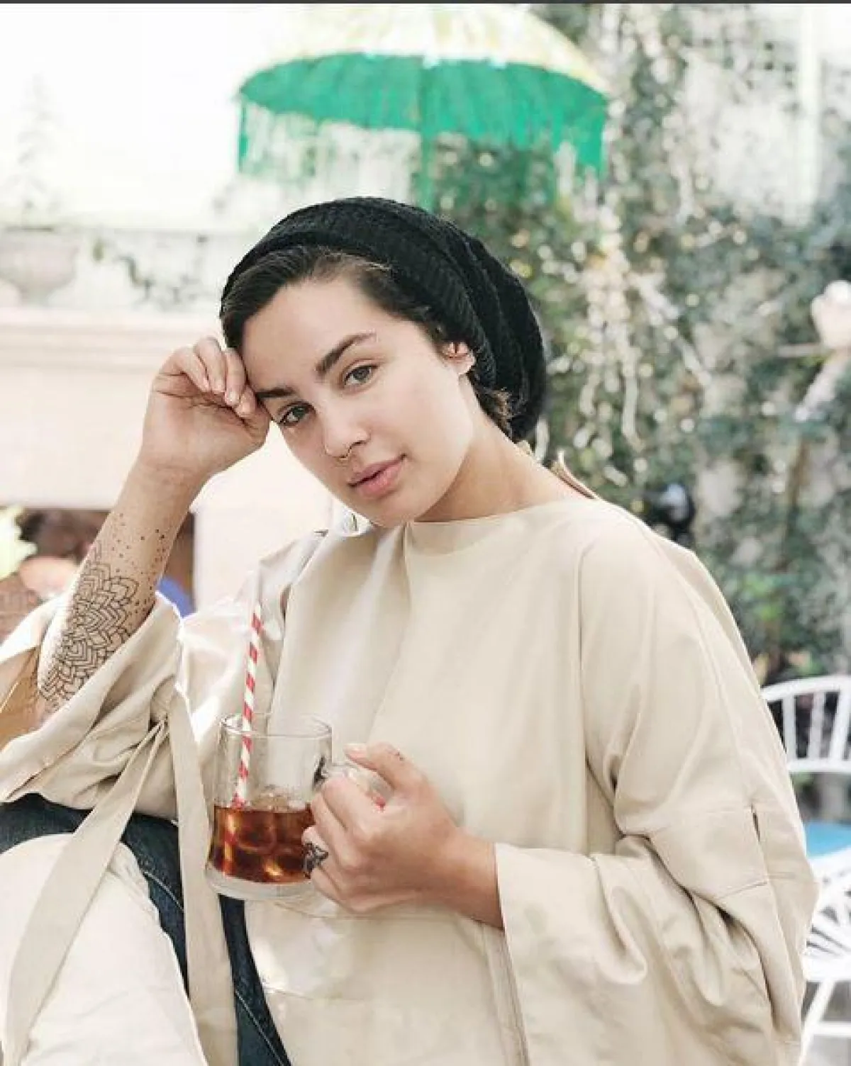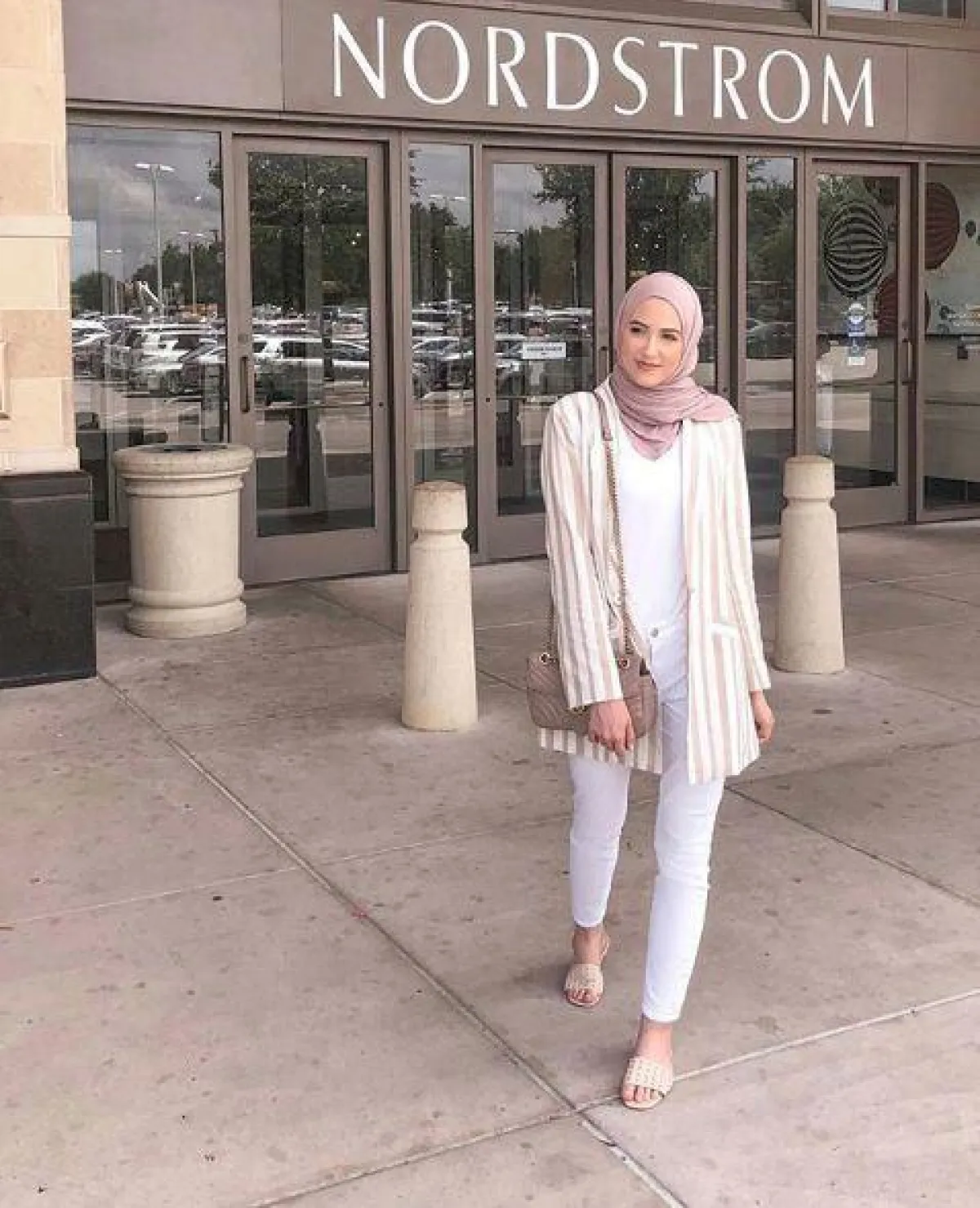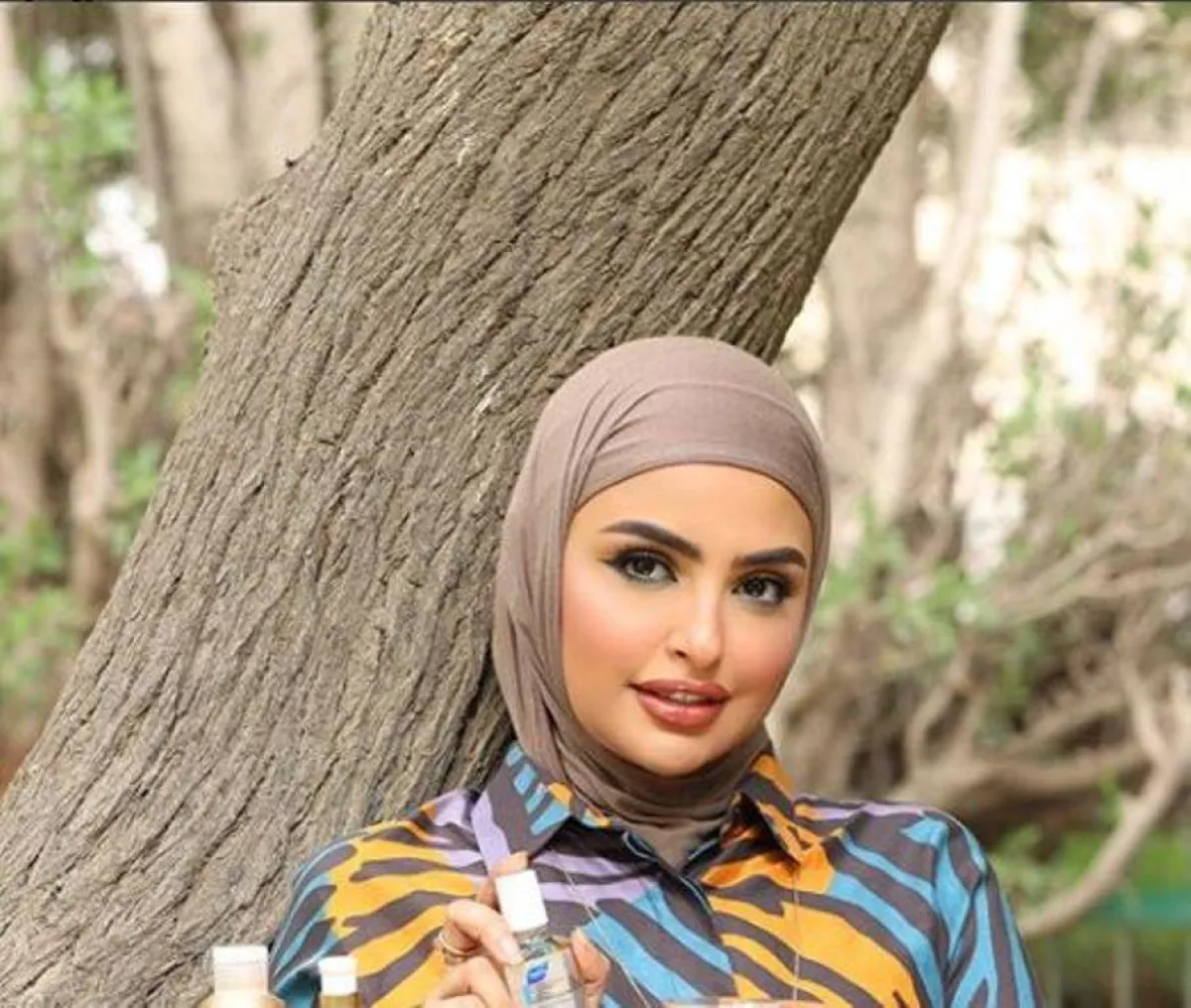 الفاشنيستا الكويتية وخبيرة المكياج سندس القطان لاتخلو خزانتها من الحجاب باللون الأبيض، ولكنها في بعض الأحيان تعتمد الألوان الترابية التي تناسب بشرتها، ومكياجها المخملي الناعم.