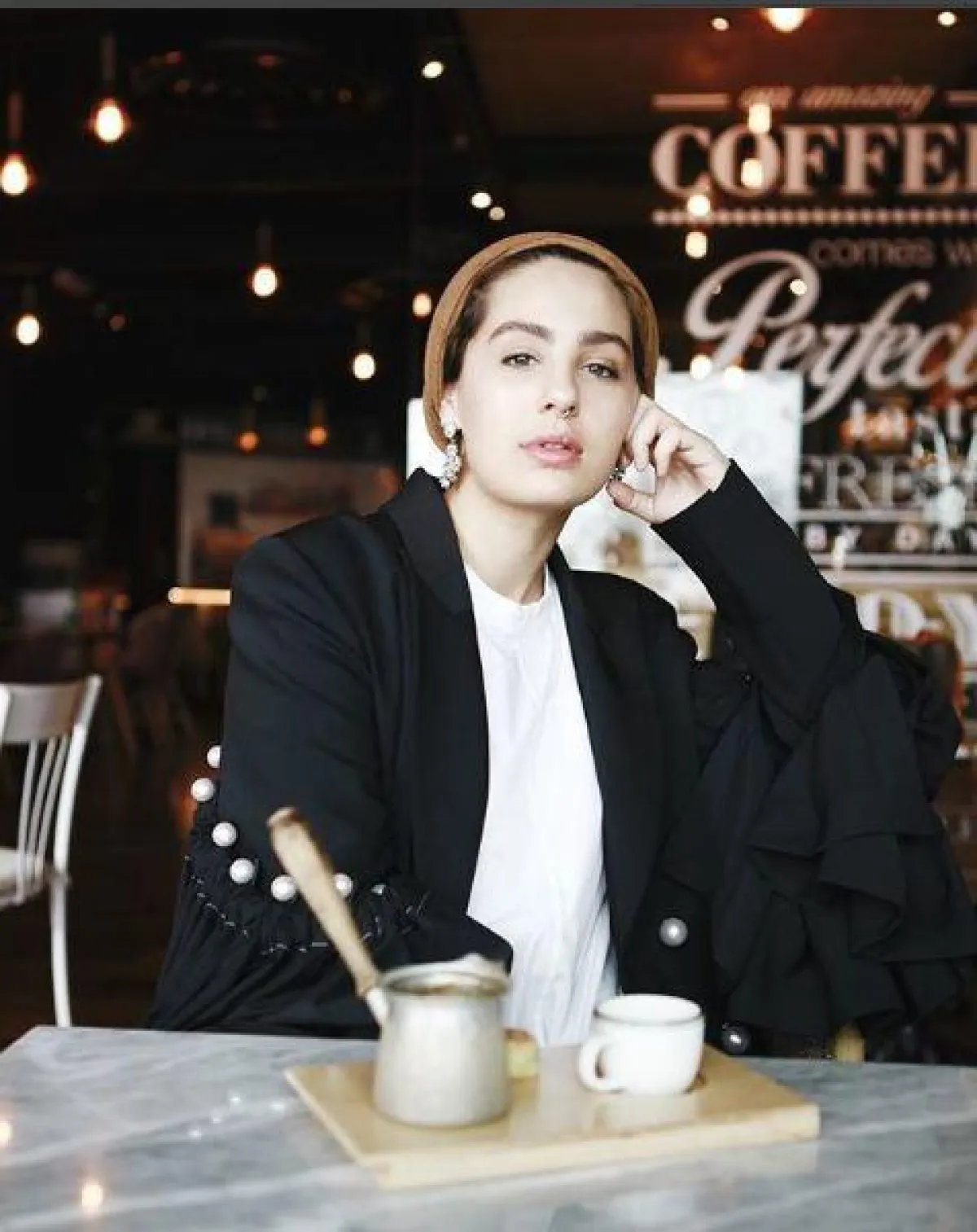 تفضّل مدونة الموضة الكويتية دلال الدوب اللون الأبيض عندما يتعلق الأمر بلون الحجاب، إلا أن إطلالاتها لا تقتصر عليه إذ لفتنا اختيارها للحجاب باللون الأسود مع العباية.