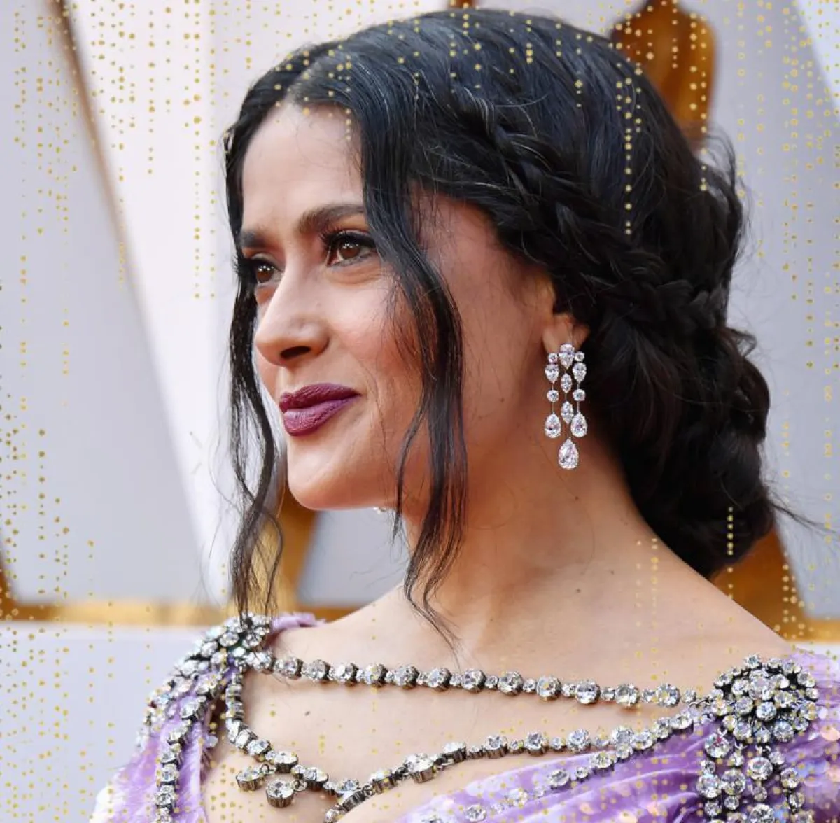 كما لفتتنا الممثلة سلمى حايكSalma Hayek في حفل أوسكار هذا العام أيضاً بإطلالتها التي اختارت أن تزيّنها بأقراط من توقيع دار هاري وينستون Harry Winston مرصّعة بأحجار الماس التي وزنت 27.5 قيراطاً والتي ذكرت العلامة على حسابها على انستقرام أنه يساوي أكثر من 4.2 مليون دولار أميركي!