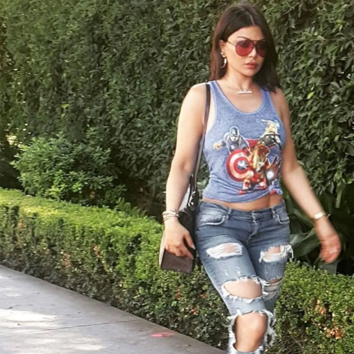 أثارت الانتباه النجمة المصرية ياسمين رئيس بإطلالاتها الجريئة أكثر من مرة بارتداء الجينز الممزق، مثل البنطلون الأسود الممزق بالكامل بشكل متساو، واختارت معه التيشرت الأبيض ذي الرسومات، وربطت على خصرها قميصًا أحمر كاروهات.