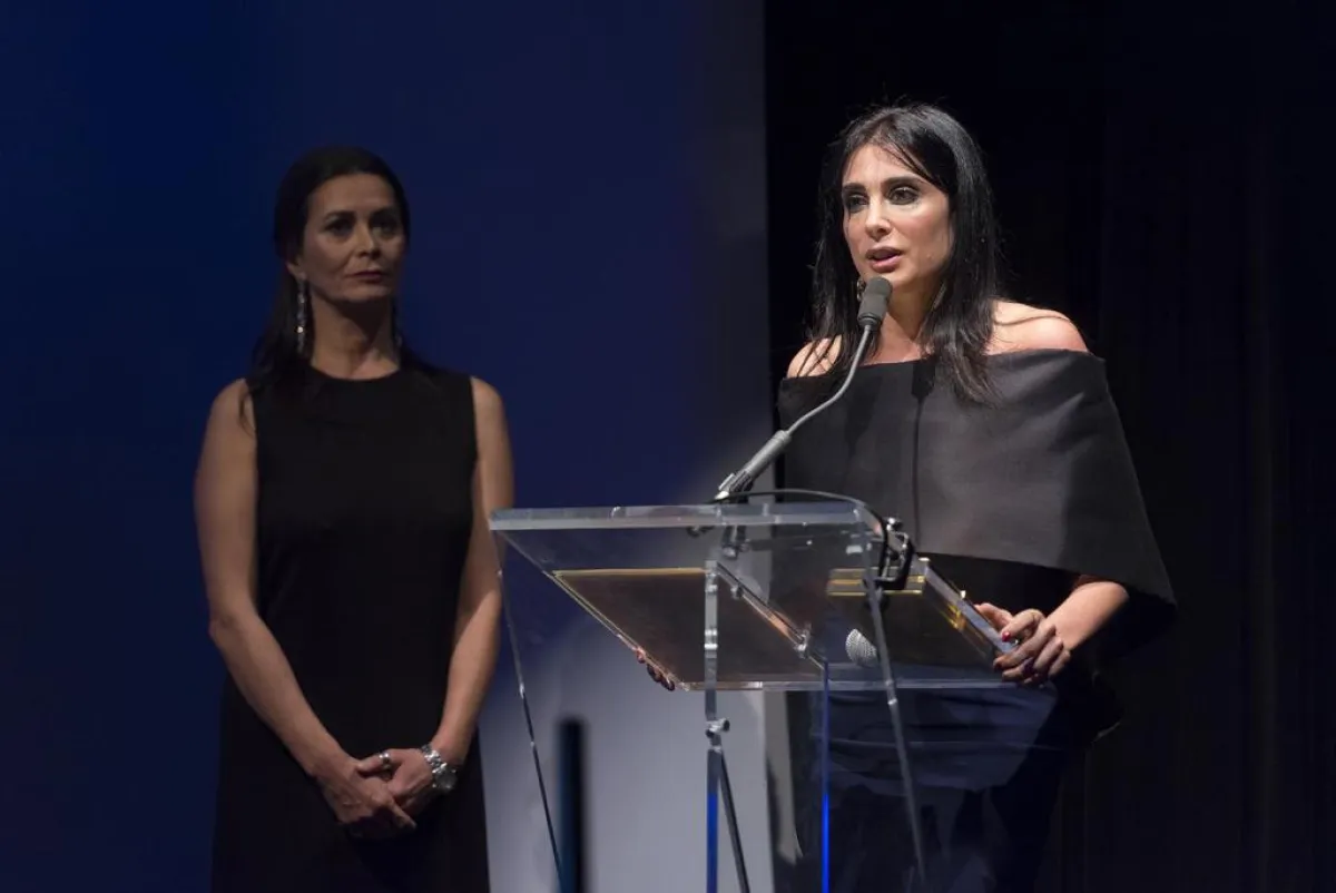 صورة جماعية تجمع جاك لانغ وزوجته ، هيام عباس ، نادين لبكي وعدد من السينمائيين العرب