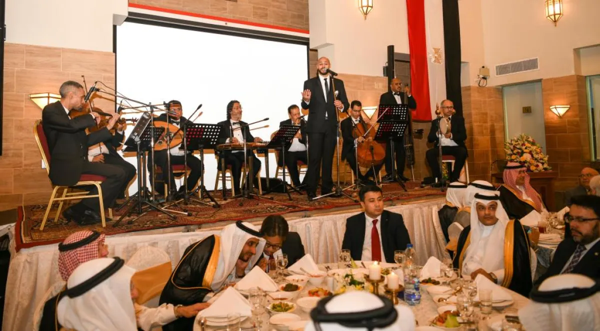 وفي نهاية كلمته، وجّه الدعوة للحضور لتناول العشاء على أنغام موسيقى فرقة التخت الشرقي في دار الأوبرا المصرية، تحت قيادة جيهان مرسي، رئيس الإدارة المركزية للموسيقى الشرقية في دار الأوبرا المصرية.