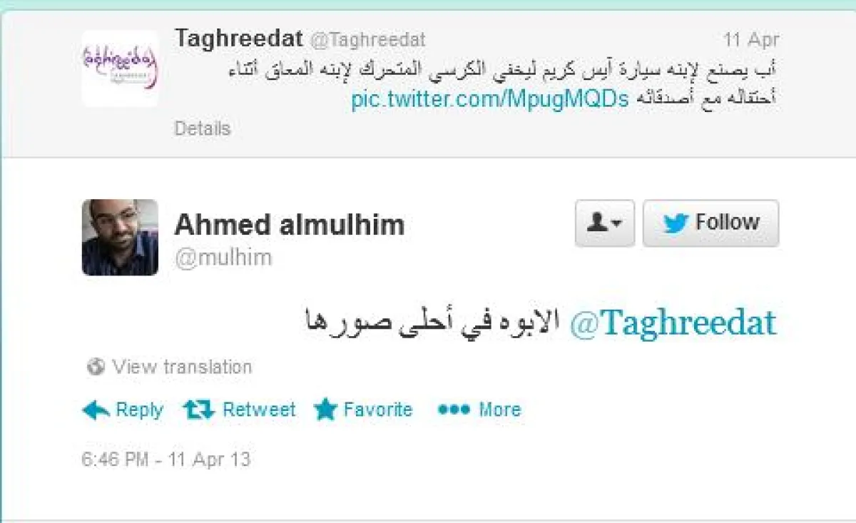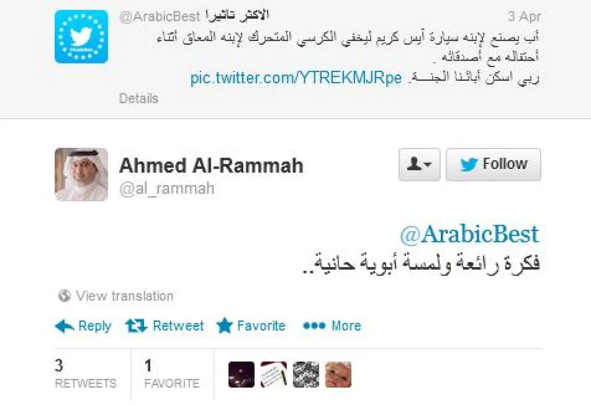 "فكرة رائعة ولمسة أبوية حانية" وغرد Ahmed almulhim‏@:"الأبوة في أحلى صورها". وقالت Mona Salman‏@TwiteritaA: "من أجمل ما شاهدت : و أيضاW من أحزن ما شاهدت".