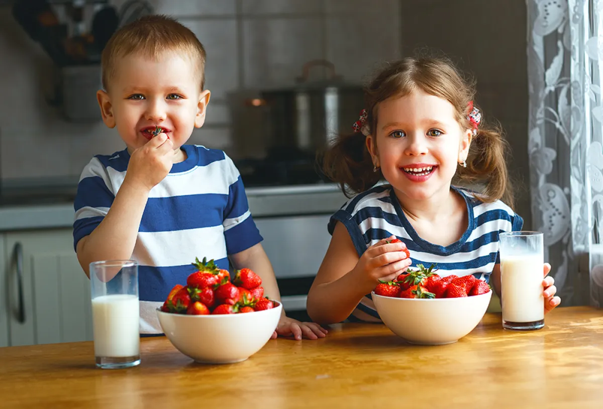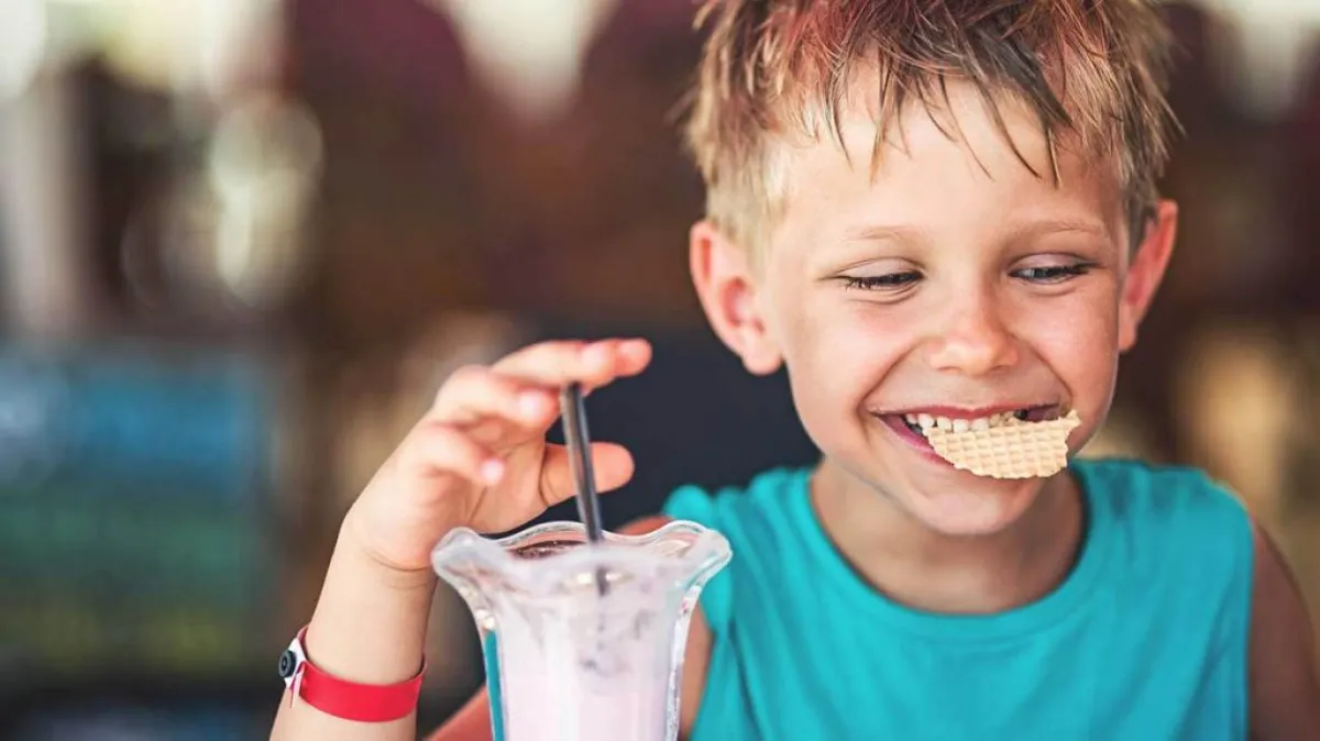 4. قدمي لطفلك بعض الأطعمة الداعمة التي تساعد على فتح شهيته وتزيد وزنه، مثل الفاكهة المحلاة، وتجنبي عزيزتي الأم العصائر المركزة عالية السكر؛ إذ يمكن أن تؤثر سلباً على أسنان الطفل.