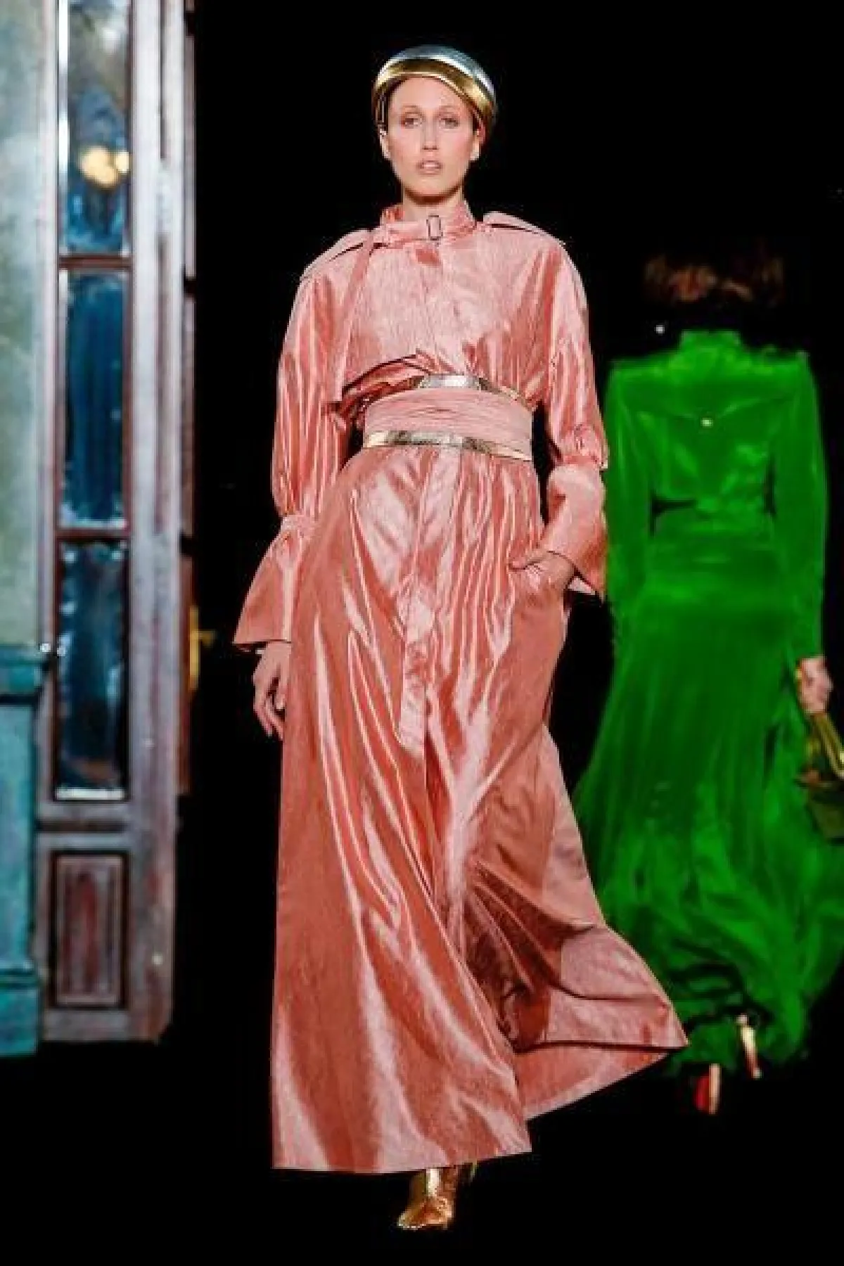 - احتوت مجموعة دار جيفنشي Givenchy على الحصة الأكبر من الفساتين المحتشمة، وأكثر ما ميزها عن غيرها الكاب الذي زينها كما لفتتنا صيحة الأكتاف البارزة، الأمر الذي يصب في صالح صاحبة القوام الكمثري.