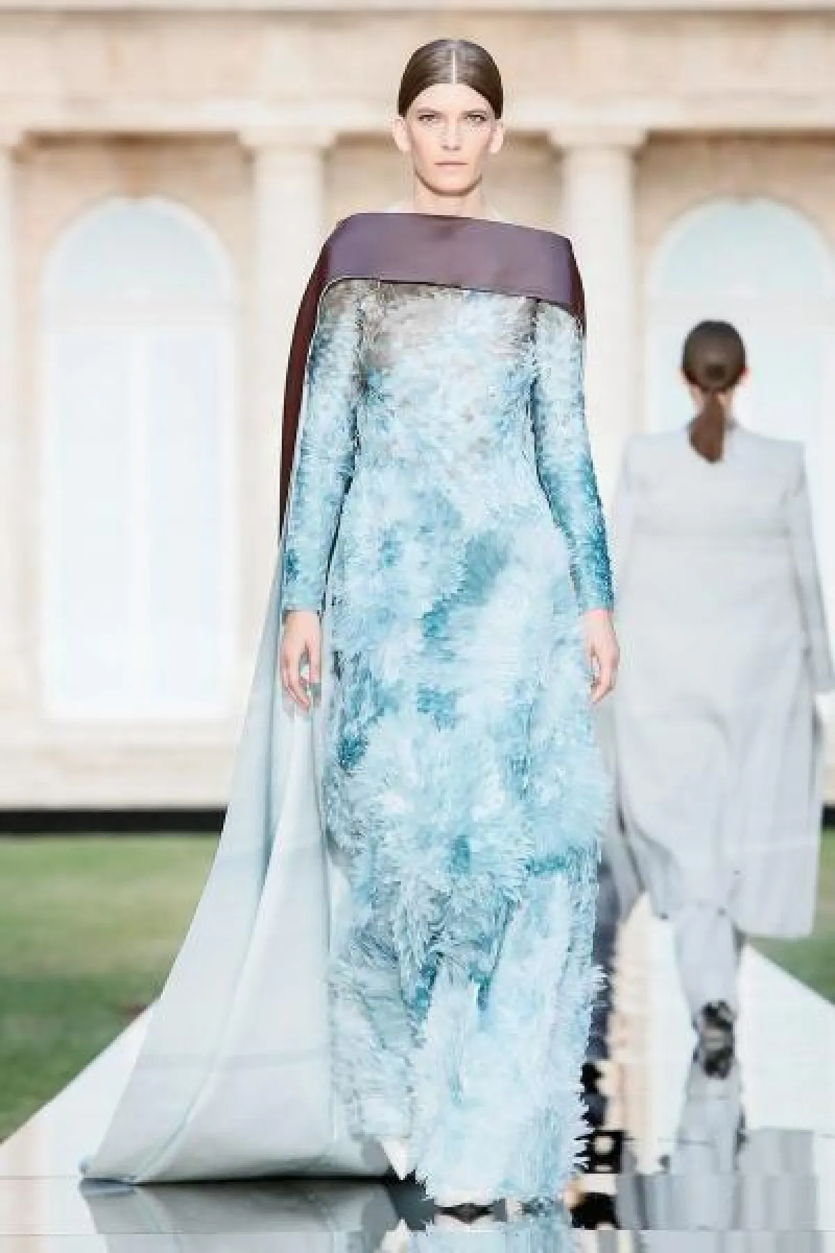 وقدمت ماركة جيفنشي صيحة الكاب الرائجة في فساتين سهرة فخمة، وأبدعت في مزج الألوان مثل الموديل الذي يجمع بين الفضي اللامع والشيفون بلون السيمون، بالإضافة إلى الفساتين الراقية المزينة بأحزمة حول الخصر.