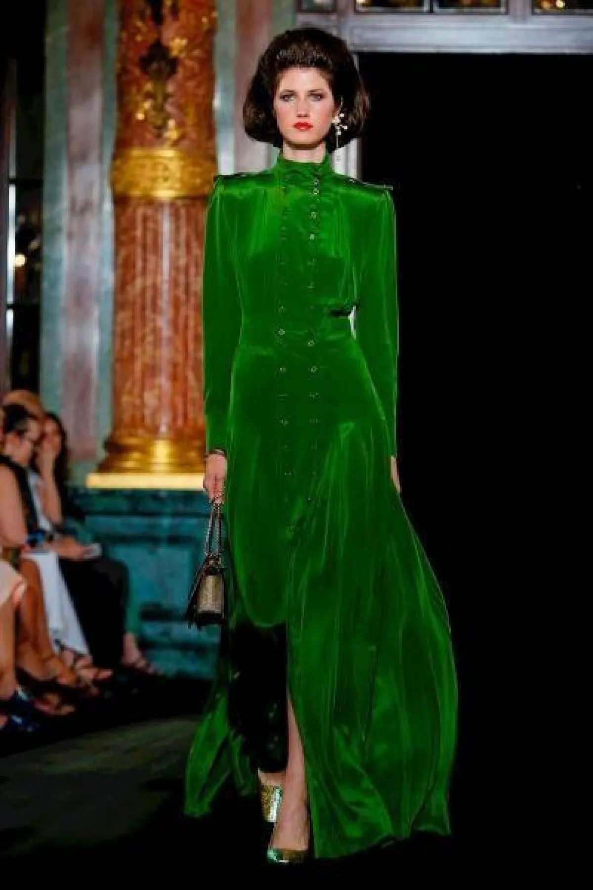 ومن الماركات التي قدمت فساتين محتشمة تعود إلى حقبة السبعينات، ماركة Rvdk Couture، سواء في الموديلات أو الألوان، فصممت فستاناً أخضر مزيناً بأزرار طولية من الأمام، وآخر باللون الوردي مع حزام عريض حول الخصر.