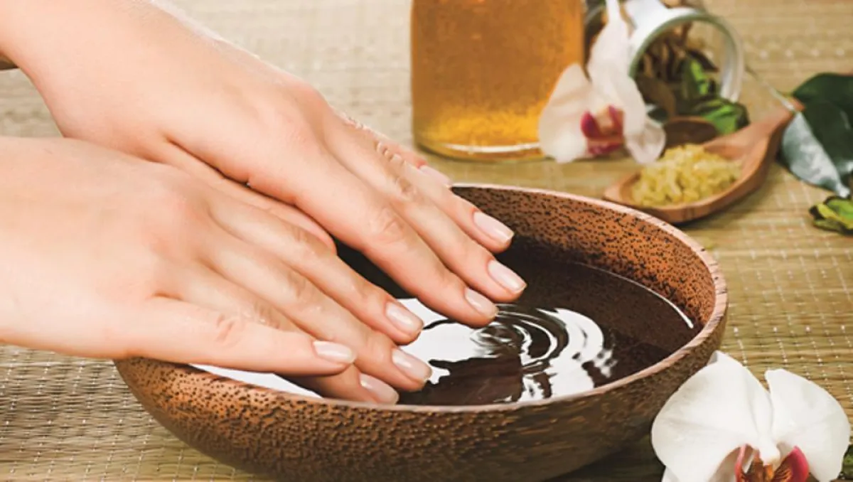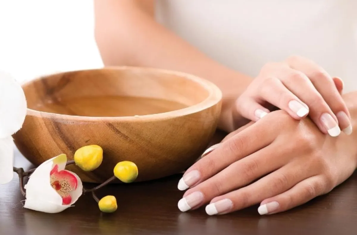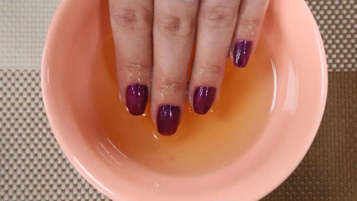 انقعي أظافركِ بالخليط لمدة 15 دقيقة، ثم جففيها بلطف،