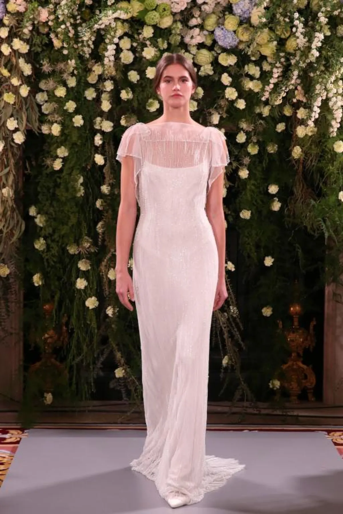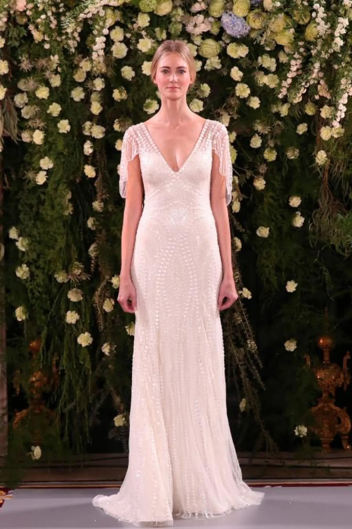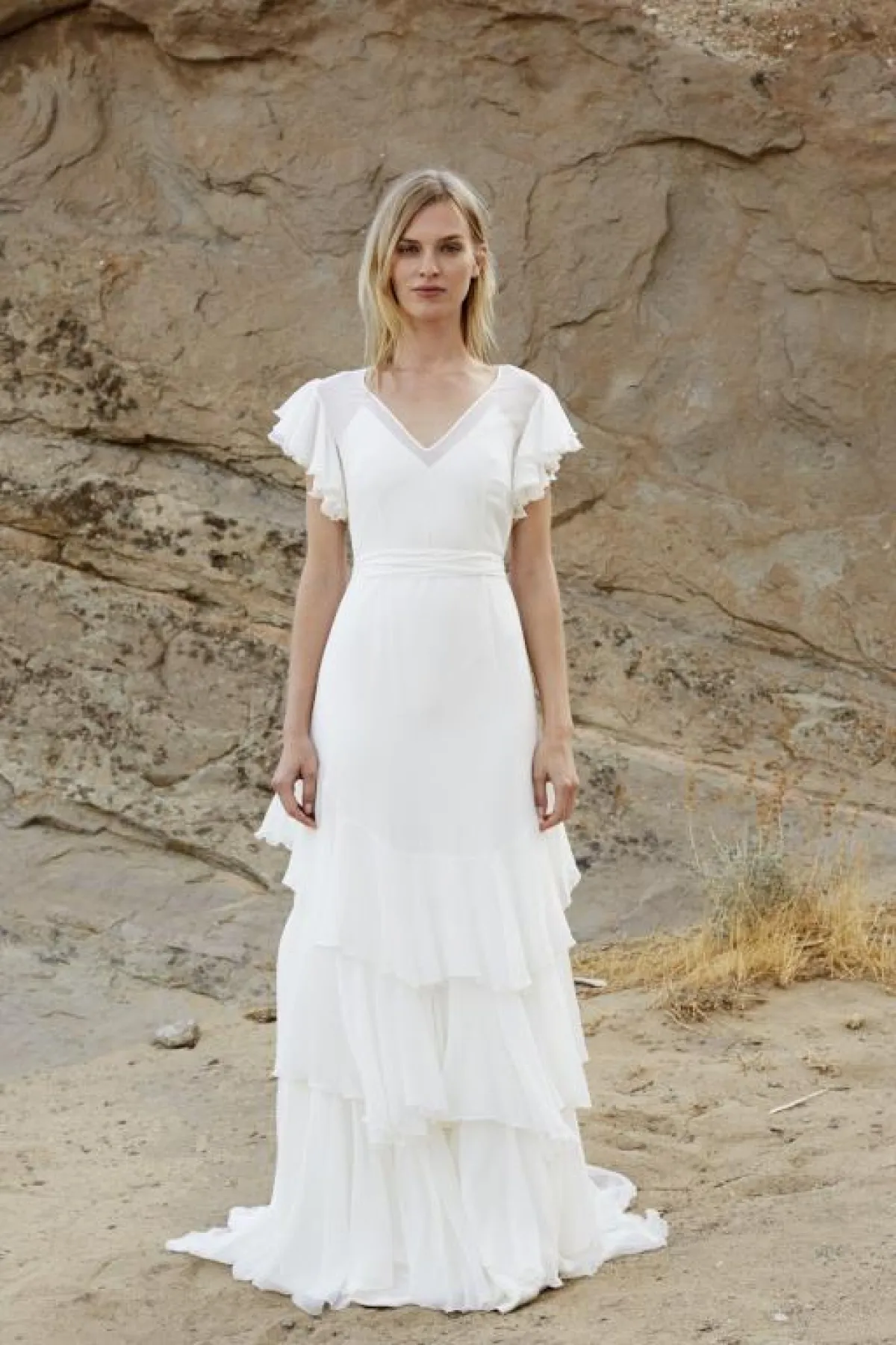 تعدّ أكمام Layered Flutter التي ترفرف على الأكتاف في طبقات قصيرة لتجعلكِ مثل الفراشة، هي الأبرز في هذه الصيحة، مثل فساتين زفاف Alyne by rita Vinieris، وفستان زفاف سافانا ميلر Savannah Miller، وفستان زفاف Watters، وبعض موديلات فساتين زفاف جيني باكهام Jenny Packham.