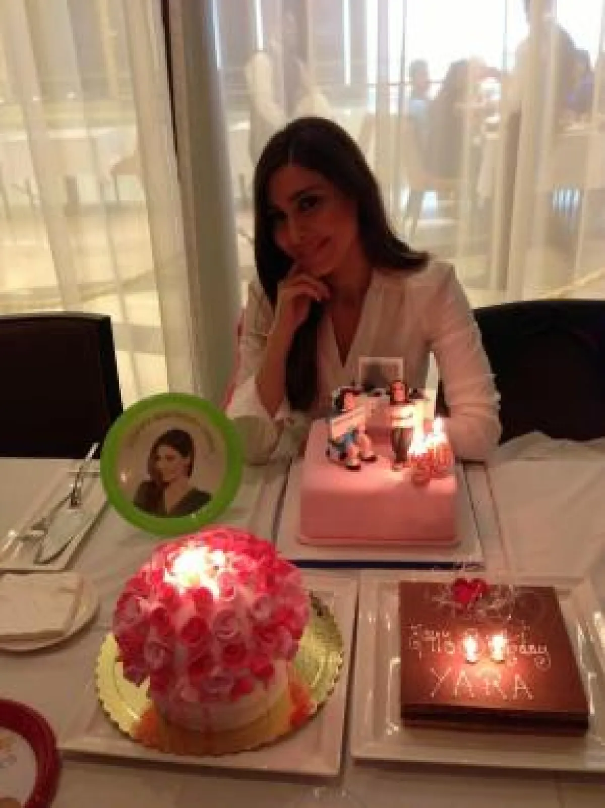 ونشرت يارا صور احتفالها البسيط بعيد ميلادها، ومن بين الصور صورتها وإلى جانبها قالب عيد ميلادها على شكل عطر 'أسكادا'، كونها الوجه الإعلاني لعطرها في الشرق الأوسط.