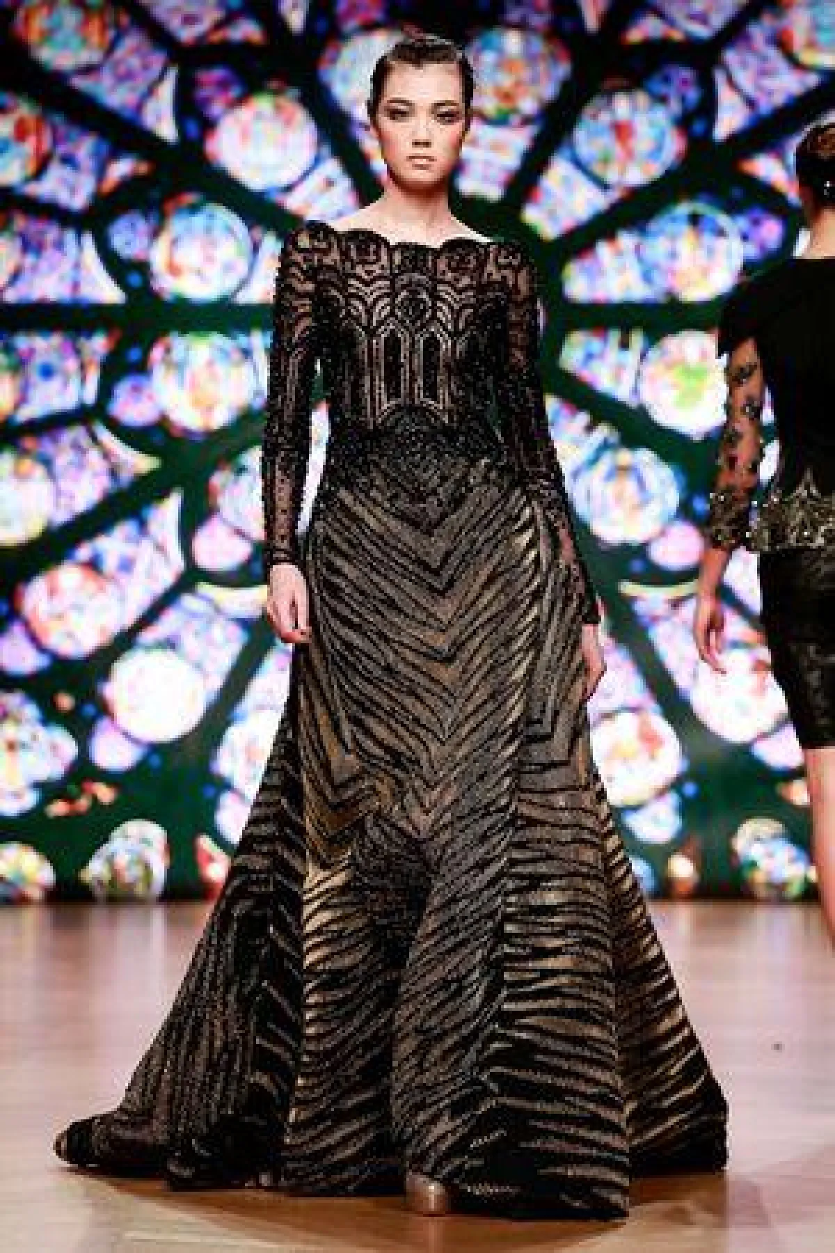وجاءت دار rvdk بفستان سهرة للمحجبات يمزج بين أقمشة مزينة بالبولكا دوت وآخر مزين بنقوشات الزهور، وأبدع من ناحية أخرى المصمم طوني ورد في فستان سهرة باللون الأسود وجاء مطرزاً بخيوط لامعة يخطف القلب.