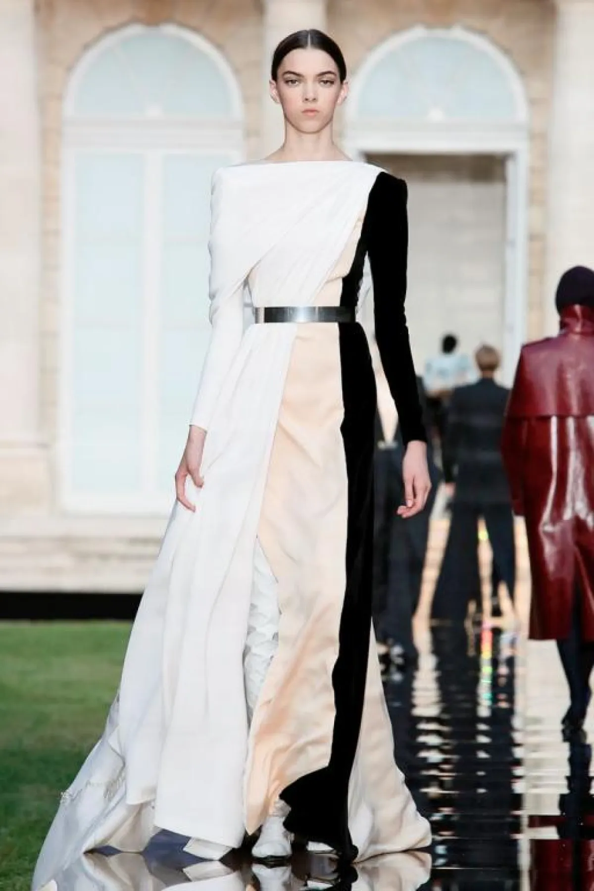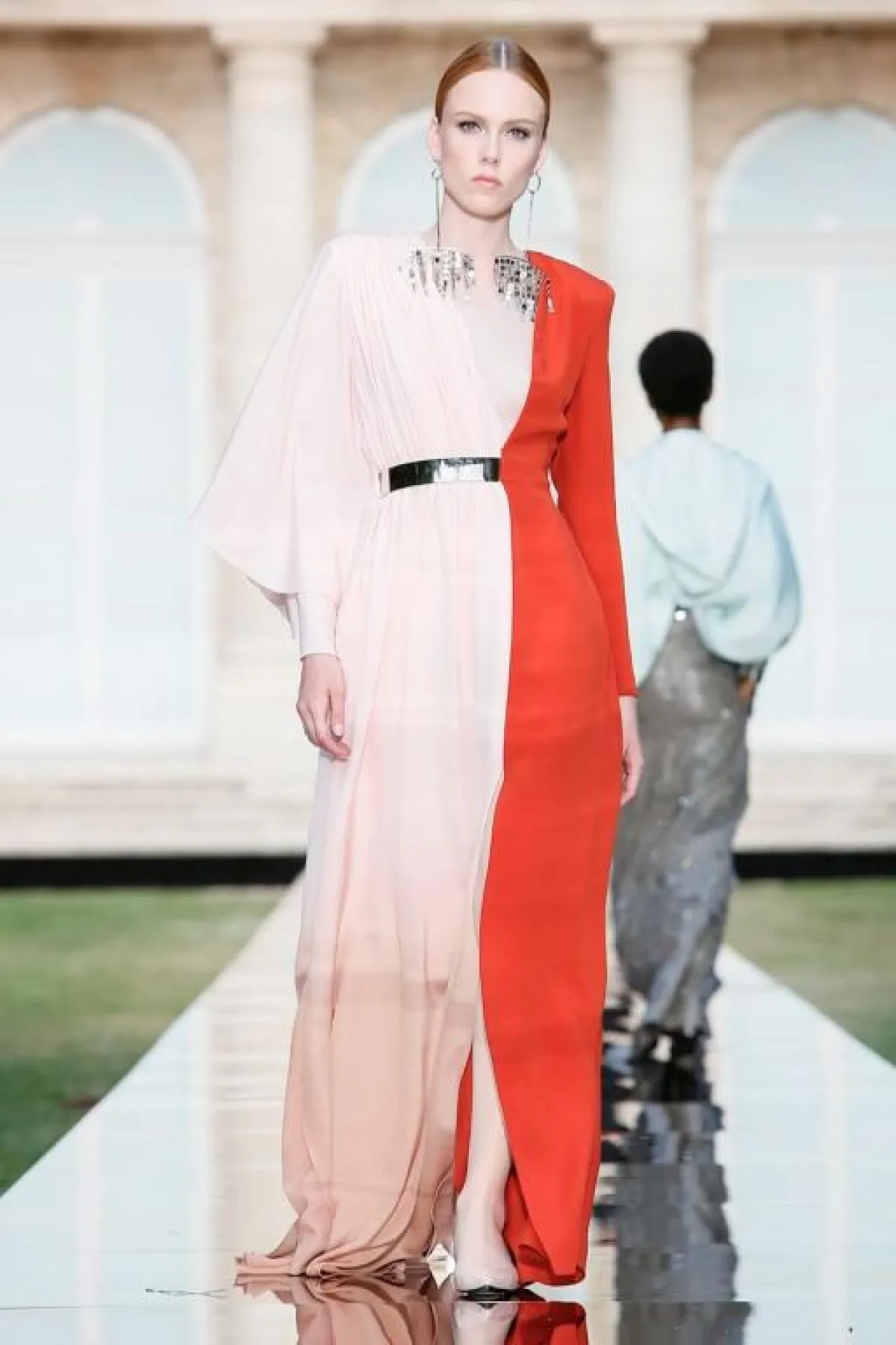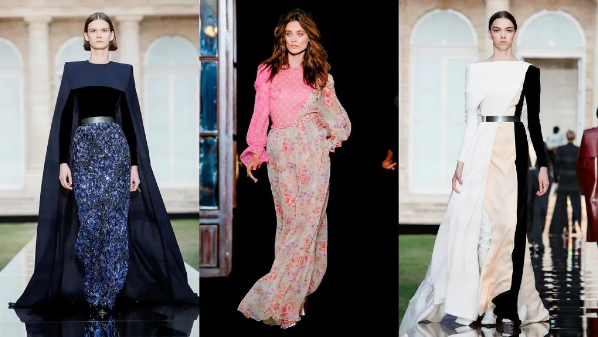 فمثلاً مزجت دار أزياء جيفنشي givenchy بين اللون الوردي والأحمر في فستان واحد ، فجاء اللونان منتصفين بطول الفستان، وأتي موديل آخر باللون الكحلي من النصف العلوي ومزيناً بـ cape طويل، إلا أن الجزء السفلي منه كان يزينه كثير من التطريزات.