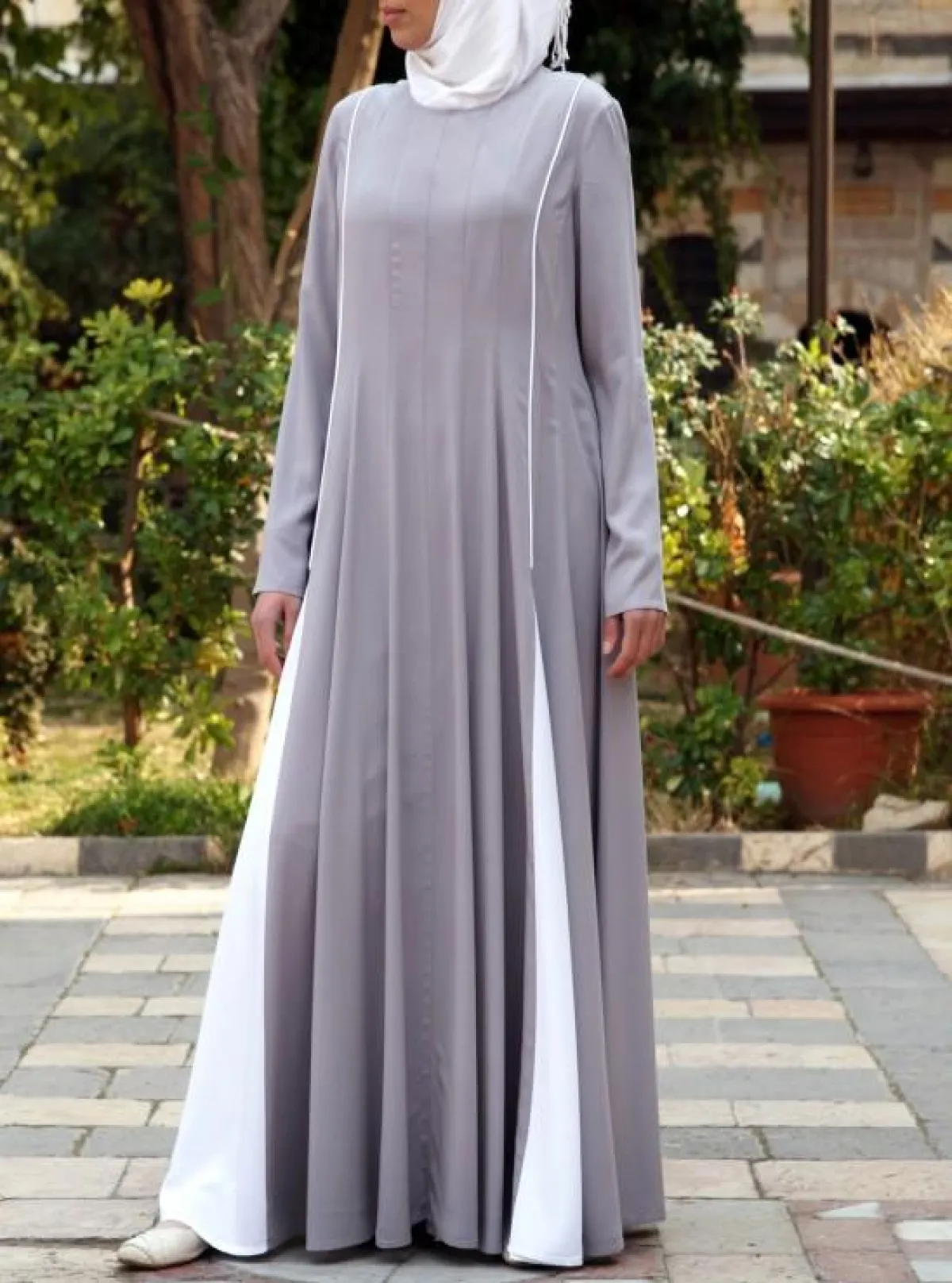 - اتّجهي إلى العبايات الموّحدة اللّون أو من لونين لا أكثر، تكون مقلّمة عاموديّاً لتظهر قامتكِ أطول ممّا هي عليه.