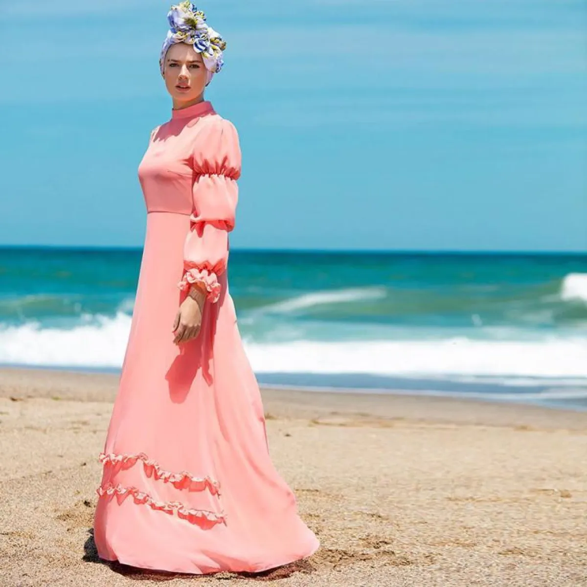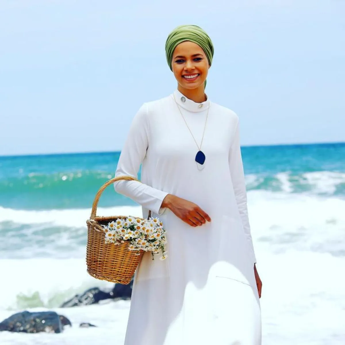 - اتجهي إلى اختيار الفساتين البسيطة ذات القصات الناعمة لتضفي إلى إطلالتك مزيداً من الأناقة. اختاري إكسسوارات بسيطة لتضفيها إلى أزيائك، فمثلاً بإمكانك الاكتفاء بسلسلة طويلة أو حقيبة مزينة بالزهور مع فستانك. أما لفة الحجاب فبإمكانك اختيار اللفة التقليدية أو التحلي بلفة التوربان المميزة.