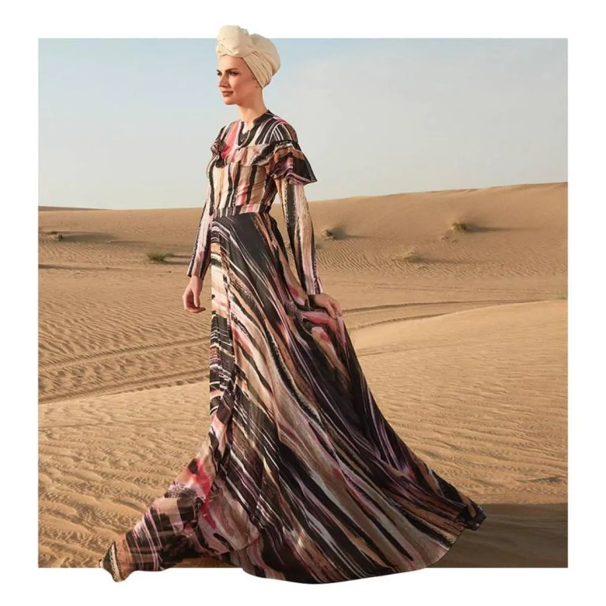 - لفة التوربان من أبرز صيحات الموضة، وهي ستكون رائعة للغاية إن كنت بتنسيقها مع فساتين المحجبات بشكل عام. اختاري إحدى لفاتها المختلفة وقومي بتجربتها، أو بإمكانك تجربة عمل أكثر من لفة توربان على طريقتك الخاصة.