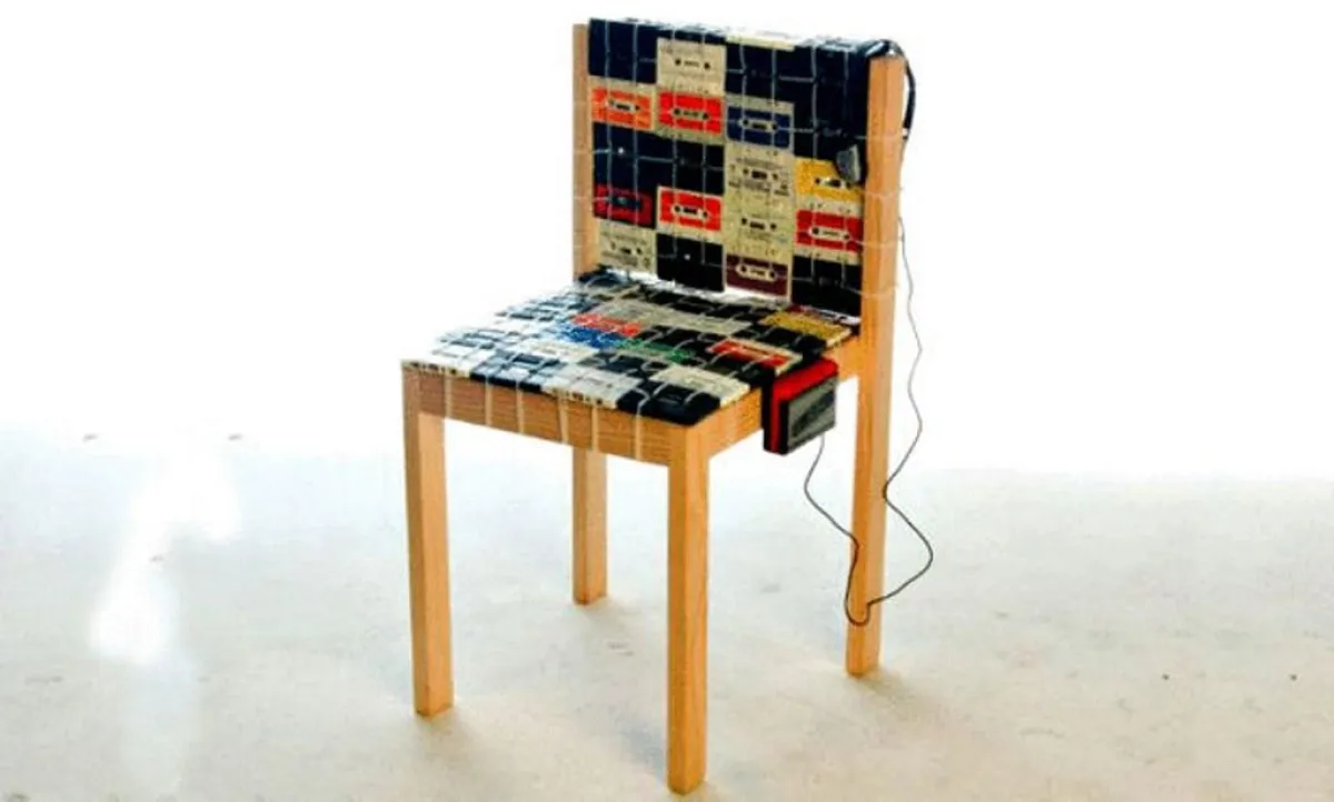 كرسي مصنوع من الأغاني والموسيقى: من الواضح تعلّق مبدع هذا الكرسي بالموسيقى، إذ أدخلها في تصميمه لأثاث المنزل. وقد تمكّن من تصميم هذا الكرسي من شرائط "الكاسيت" القديمة و"ألبومات" أشهر الفنّانين الأمريكيين، مثل "مادونا" و"ألفس بريسلي". ويبلغ سعر هذا الكرسي 540 ريالاً سعوديّاً.