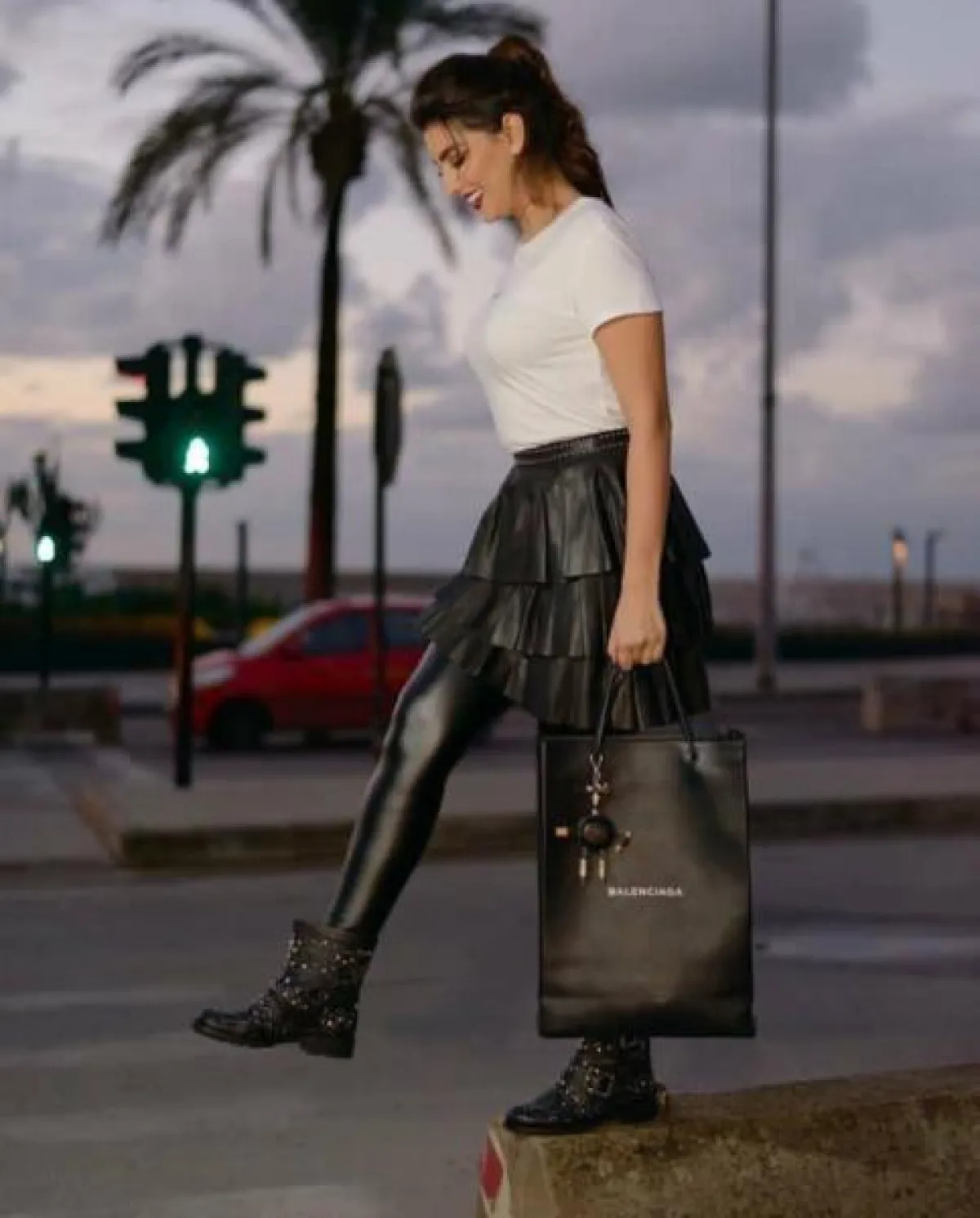 6-الفساتين والتنانير المكسّرة أو البليسيه والمصممة على هيئة طبقات، لجأت إليها مريم سعيد في أكثر من اطلالة، لتعكس طول ساقيها وعادة ما تنسّقها مع بوط طويل.
