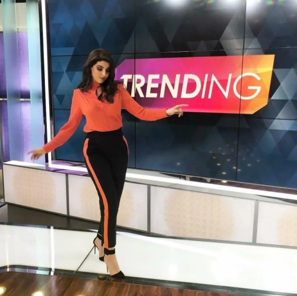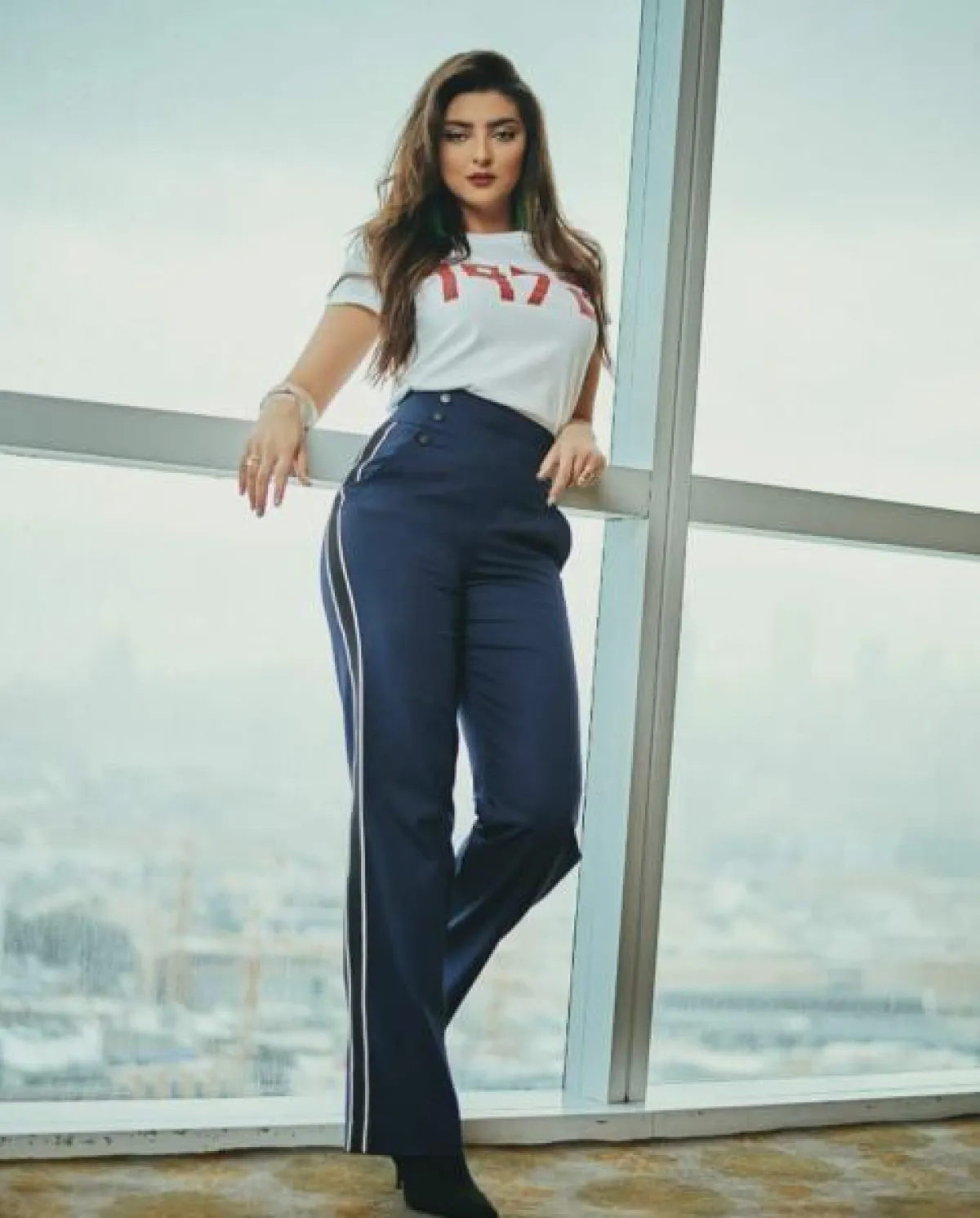 5-تفضل مريم سعيد اعتماد البلوزات القصيرة بخاصة التي تأتي على شكل حرف A وياقة V Neck لتُبرز طول القسم العلوي من قوامها.