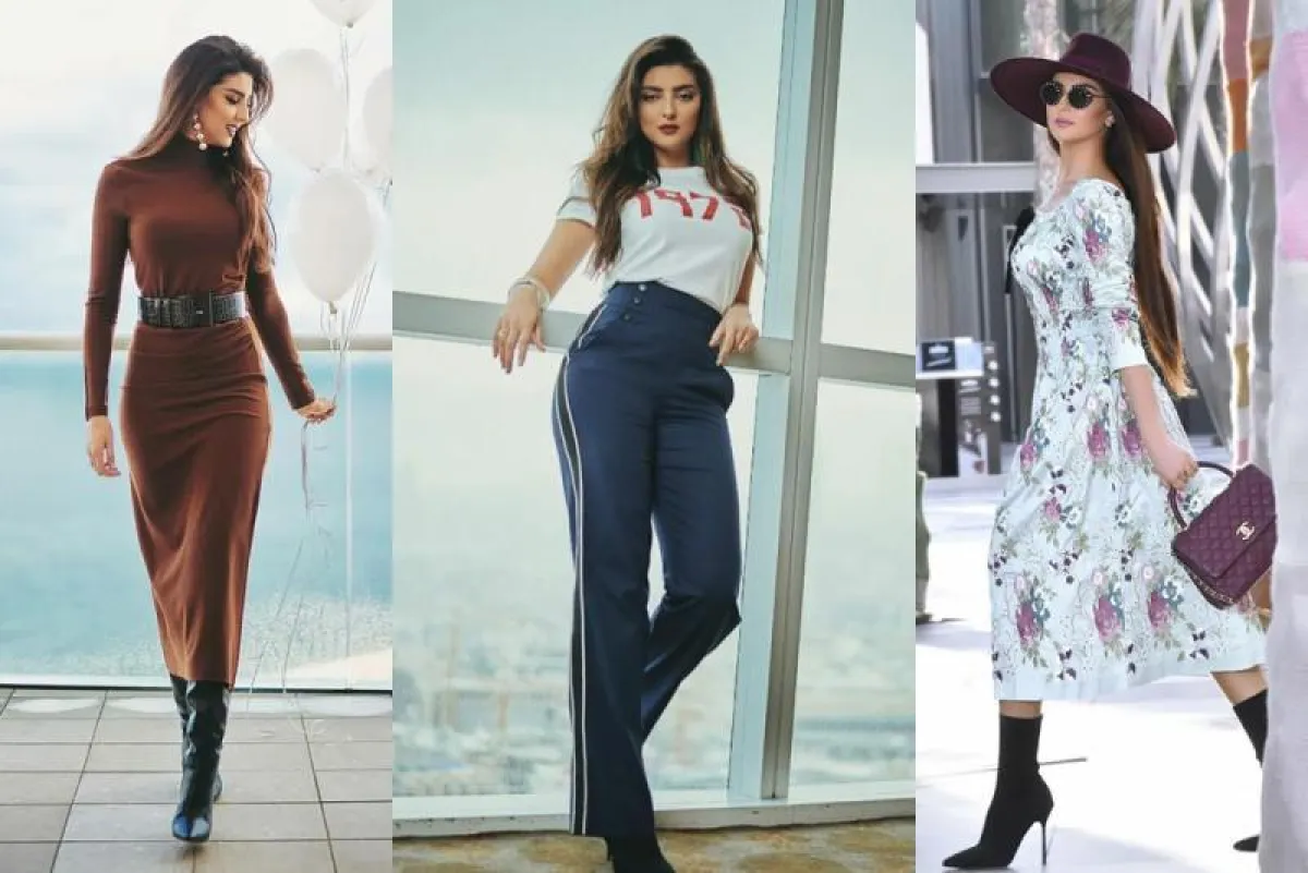 4-تنسق عادة مريم سعيد الفساتين متوسطة الطول Midi dresses مع بوط طويل يغطي السيقان المكشوفة لتُبرز طولها.
