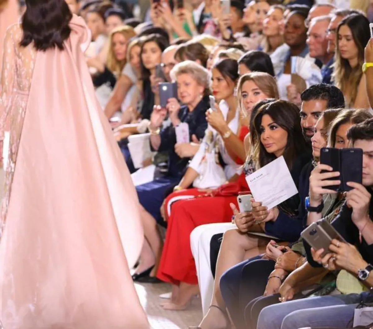 أجواء رائعة تسيطر على أسبوع الأزياء الراقية لموسم خريف وشتاء 2018 – 2019 بحضور عشاق الموضة ومحررات ومدونات الموضة والنجمات والفاشينيستات العربيات، حيث رصدنا بعض إطلالاتهن، ومن بينهن النجمة اليسا التي حضرت عرض مواطنها اللبناني إيلي صعب Elie Saab والذي تربطها به صداقة وطيدة، فتألقت بفستان من توقيعه بنصف أكمام مطرز مع تنورة شفافة تكشف عن تنورة تحتيه قصيرة، وزينت خصرها بحزام جلد أسود وحملت كلاتش من نفس اللون.