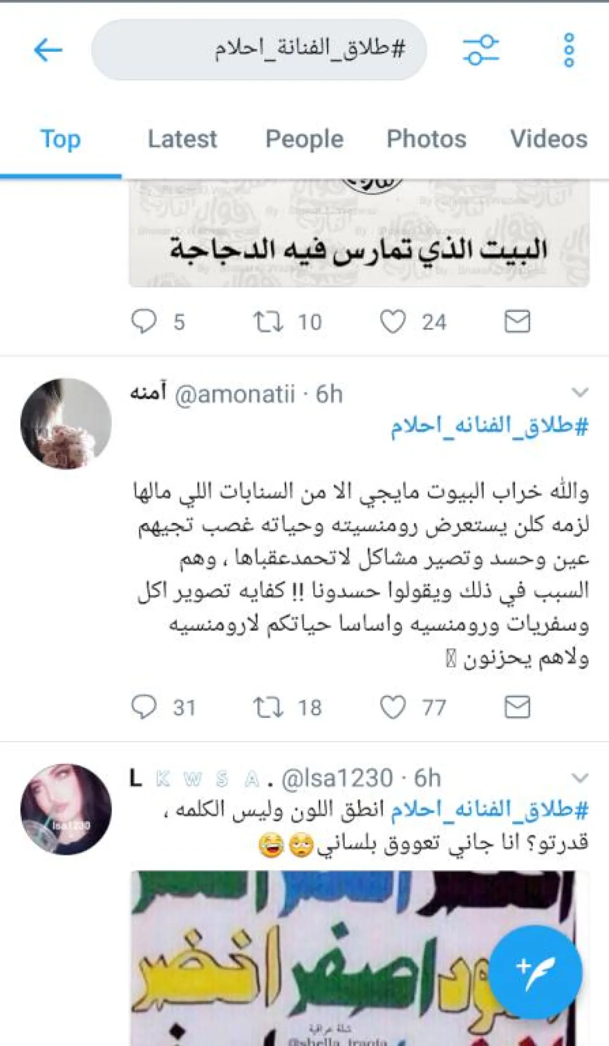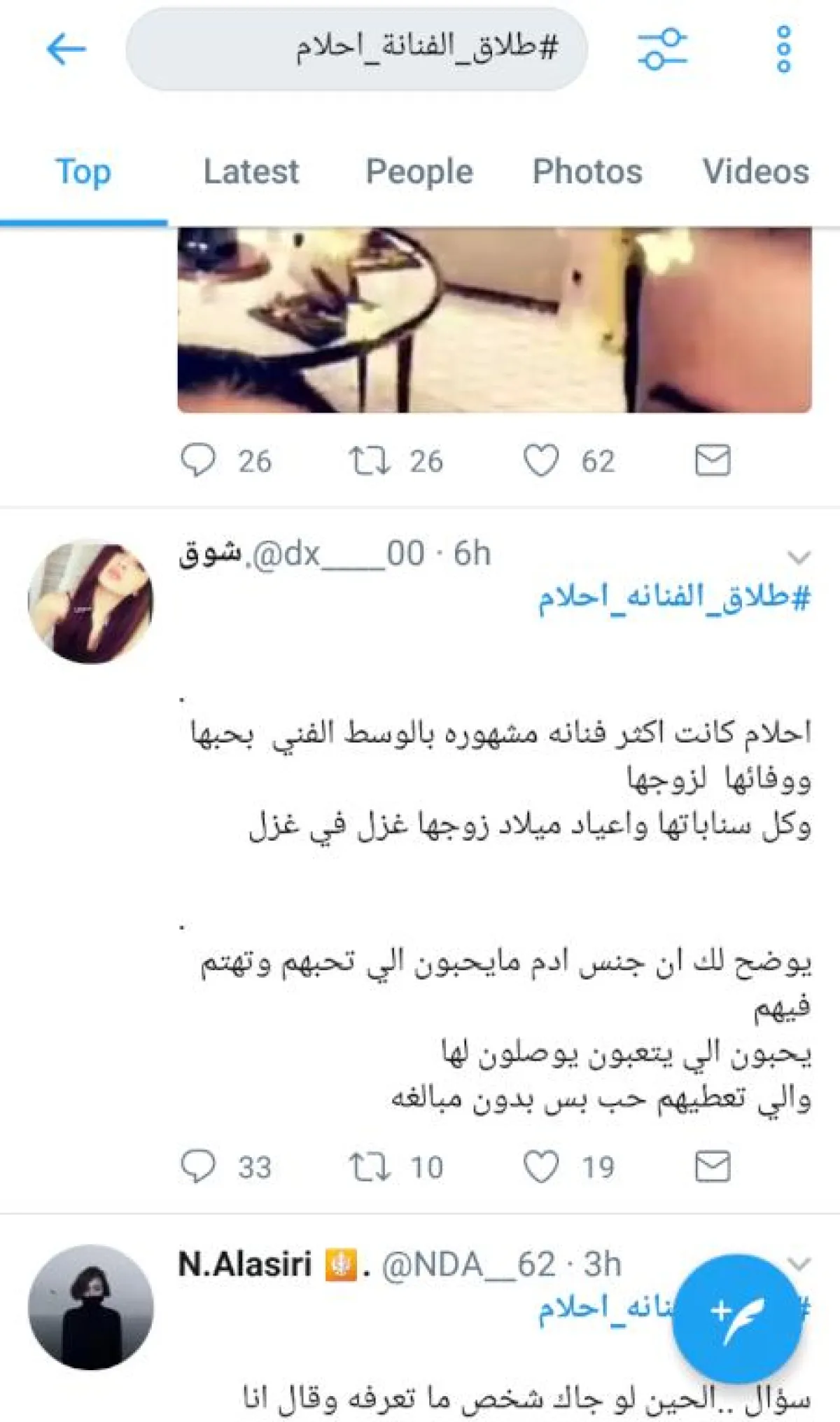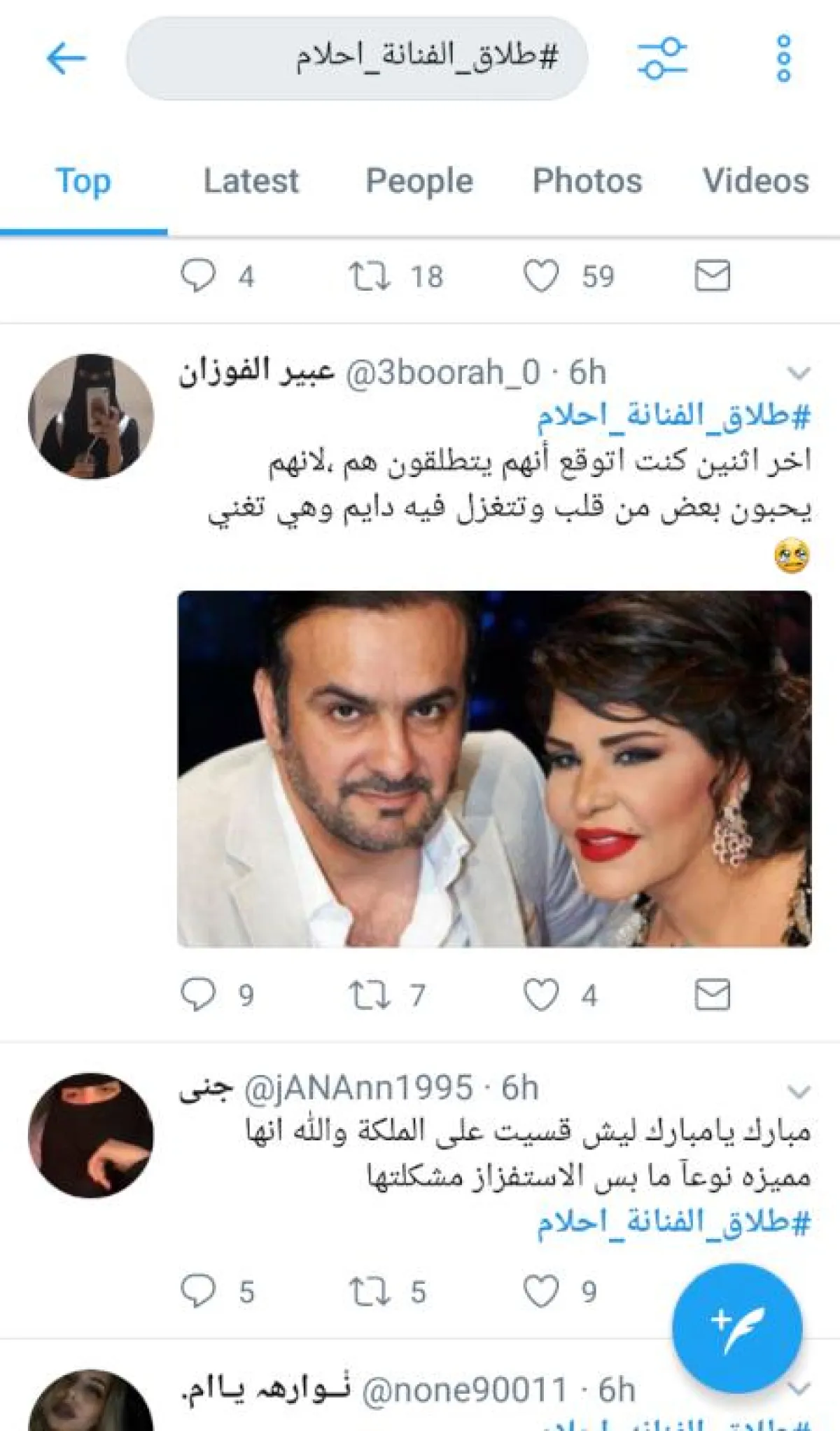 أما اللافت، فكان حساباً مزوّراً باسم الفنان ناصر القصبي يحظى بالكثير من المتابعين، سارع إلى نفي الخبر جملةً وتفصيلاً وكتب "الهاشتاغ غير صحيح والفنانة أحلام تعيش أجمل أيام حياتها مع زوجها وأبنائها وهم في قمة العقل والفكر والنضج ولا تستفزهم سفاسف الأمور عشان يطلقون بدون مراعاة أو استشعار بالمسؤولية بإبنائهم لذلك كفاكم كذب".