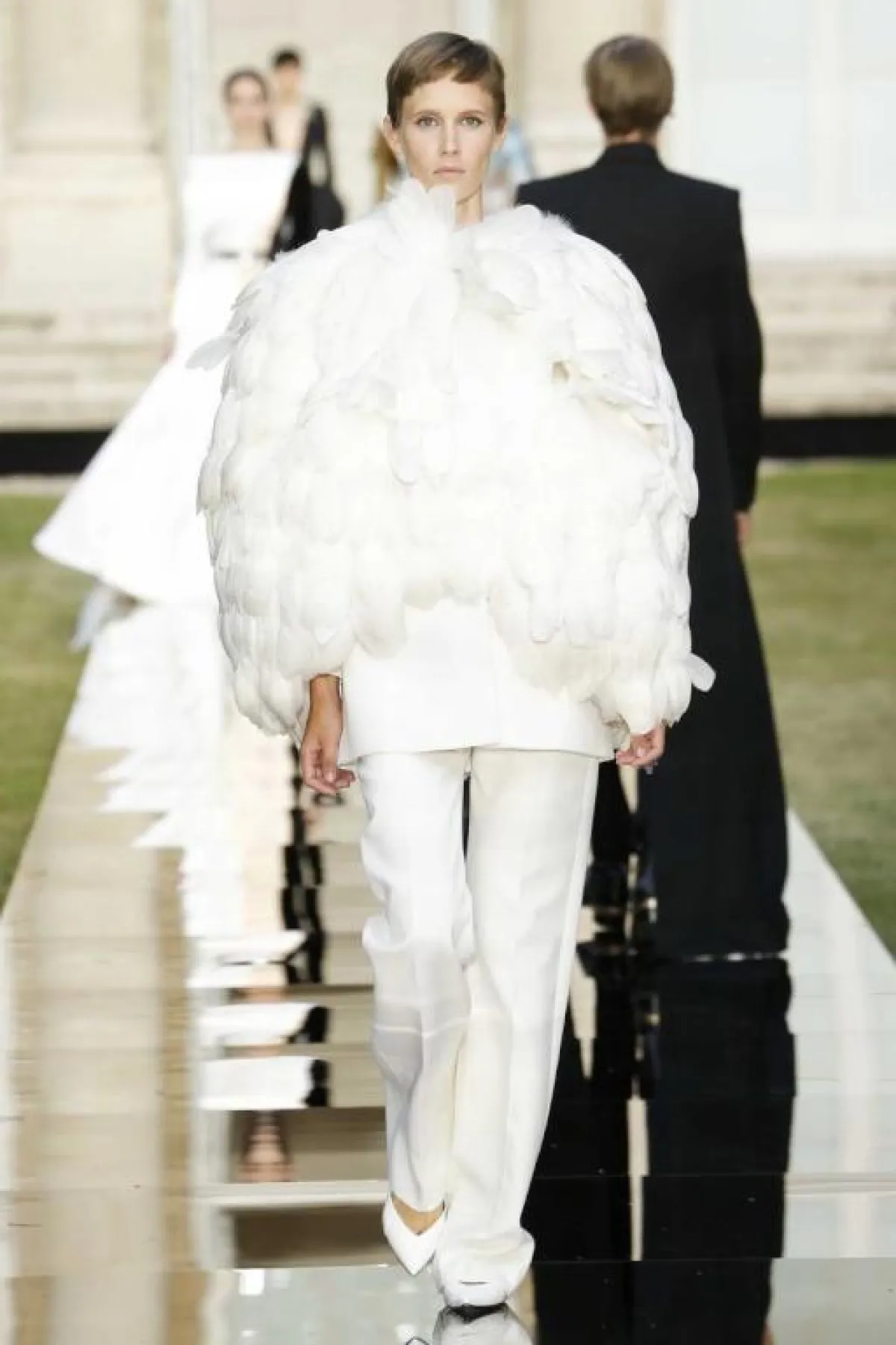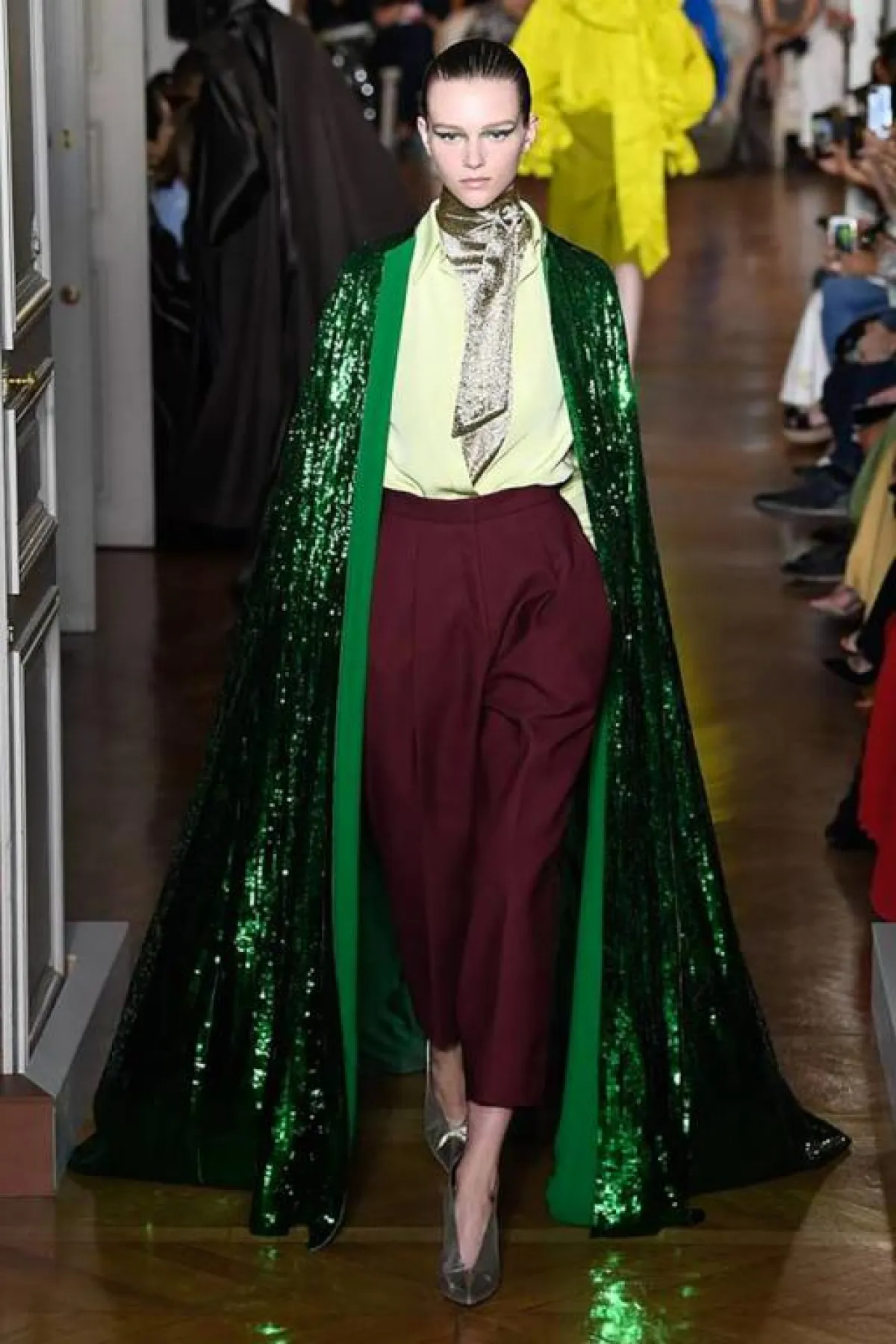 اعتمدت دار أزياء فالنتينو أيضًا على الحذاء بحرف U، ولكن بدرجة الميتاليك اللامعة، إلا أنها كانت أكثر حدة من التي اختارها زهير مراد، فكانت مدببة أكثر من الأمام، وذلك لأن الدار ابتعدت عن الفساتين البراقة، واختارت تصاميم أكثر جرأة بصيحة الكاب، والبناطيل القماشية الداكنة.