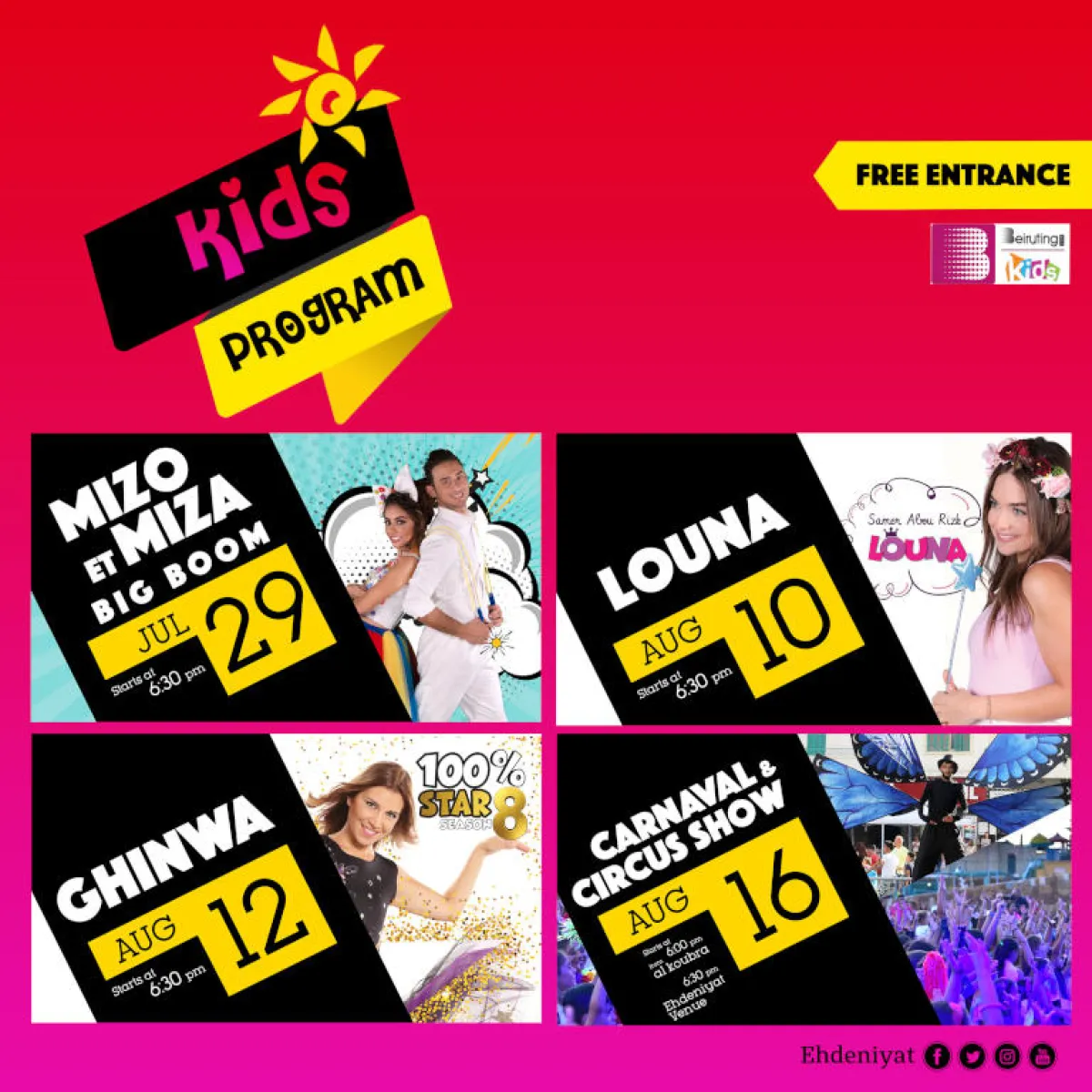 يسعى "إهدنيات" دائماً الى تنويع برنامجه بغية إرضاء جميع الأذواق والفئات العمرية. من هنا للعائلة حصّة كبيرة من النشاطات التي تتوزّع على حوالى 7 حفلات للأطفال ويذكر انّ المشاركة فيها مجّانيّة .