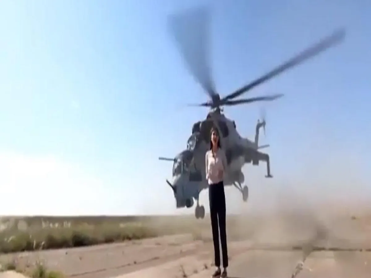 في واقعة مروعة ومشهد مرعب.. كادت مراسلة صحفية روسية تفقد حياتها؛ أثناء قيامها بتصوير تقرير تلفزيوني، بمناسبة مرور 100 عام على تشكيل القوات المسلحة في أذربيجان، عندما اقتربت منها مروحية عسكرية، وكادت تطيح برأسها.