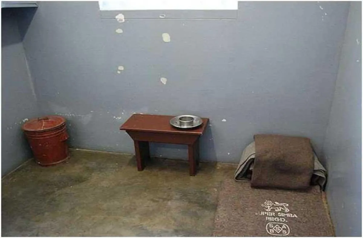ومن الجدير بالذكر، أن هذه الزنزانة الضيقة التي أمضى فيها «نيلسون مانديلا» طوال 18 سنة خلال اعتقاله كسجين رأي سياسي، خلال فترة «دولة الفصل العنصري»، من تاريخ جنوب أفريقيا، لا تتجاوز مساحتها أربعة الأمتار مربعة، كما أنها لا تحتوي سوى على مصباح واحد فقط للإضاءة، كما أنها موجودة على جزيرة «روبن» بمدينة «كيب تاون»، عاصمة مقاطعة «كيب» الغربية، الواقعة في الجنوب الغربي للبلاد.