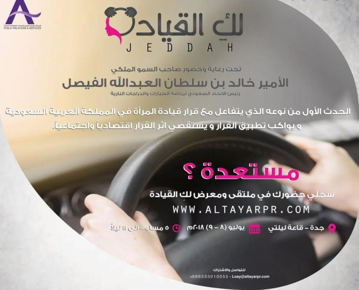 ترعى مجلة «سيدتي» معرض وملتقى «لكِ القيادة»، الذي يقام اليوم في قاعة «ليلتي» في جدة، من 8 إلى 9 يوليو، وهو الحدث الأول من نوعه، والذي يتفاعل مع قرار السماح بقيادة المرأة في المملكة العربية السعودية، ويواكب الاستعدادات لتطبيق القرار، ويستقصي أثر القرار اقتصاديًا واجتماعيًا.