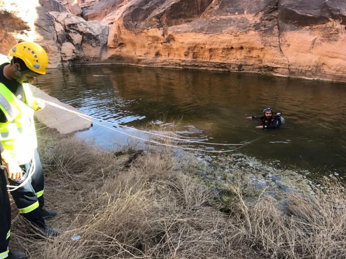 باشرت إحدى فرق المديرية العامة للدفاع المدني في تبوك، حادثة سقوط مواطن بمستنقع مياه بمنطقة جبلية تابعة لمنطقة تبوك.