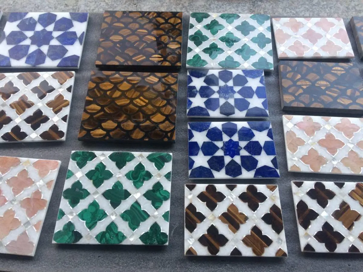 إشارة إلى أنَّ أسطح الأثاث المصنوع من الأحجار شبه الكريمة تمتاز بمظهر طبيعي خلَّاب غير مشذب الأطراف في بعض التصاميم، وفي الأخرى تجذب بألوانها ولماعيَّتها وتفاصيلها...