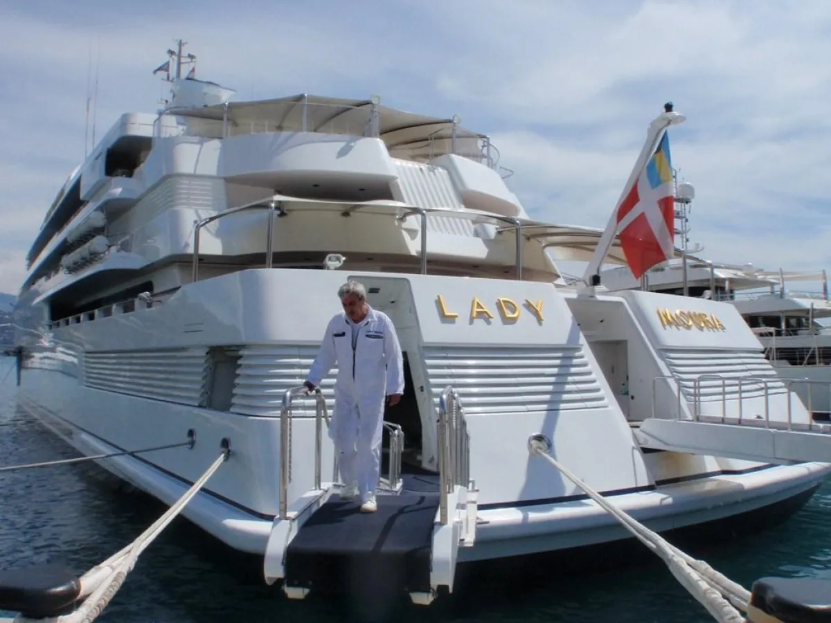 7 ـ "يخت الليدي مورا": يمتلكه رجل الأعمال السعوديّ الدكتور "ناصر بن إبراهيم الرّشيد".يتلألأ اسم "الليدي مورا" على هيكله الخارجي بأحرف من ذهب.يقدّر ثمنه بـ 200 مليون دولار أمريكيّ، ويبلغ طوله حوالى 344 قدماً.