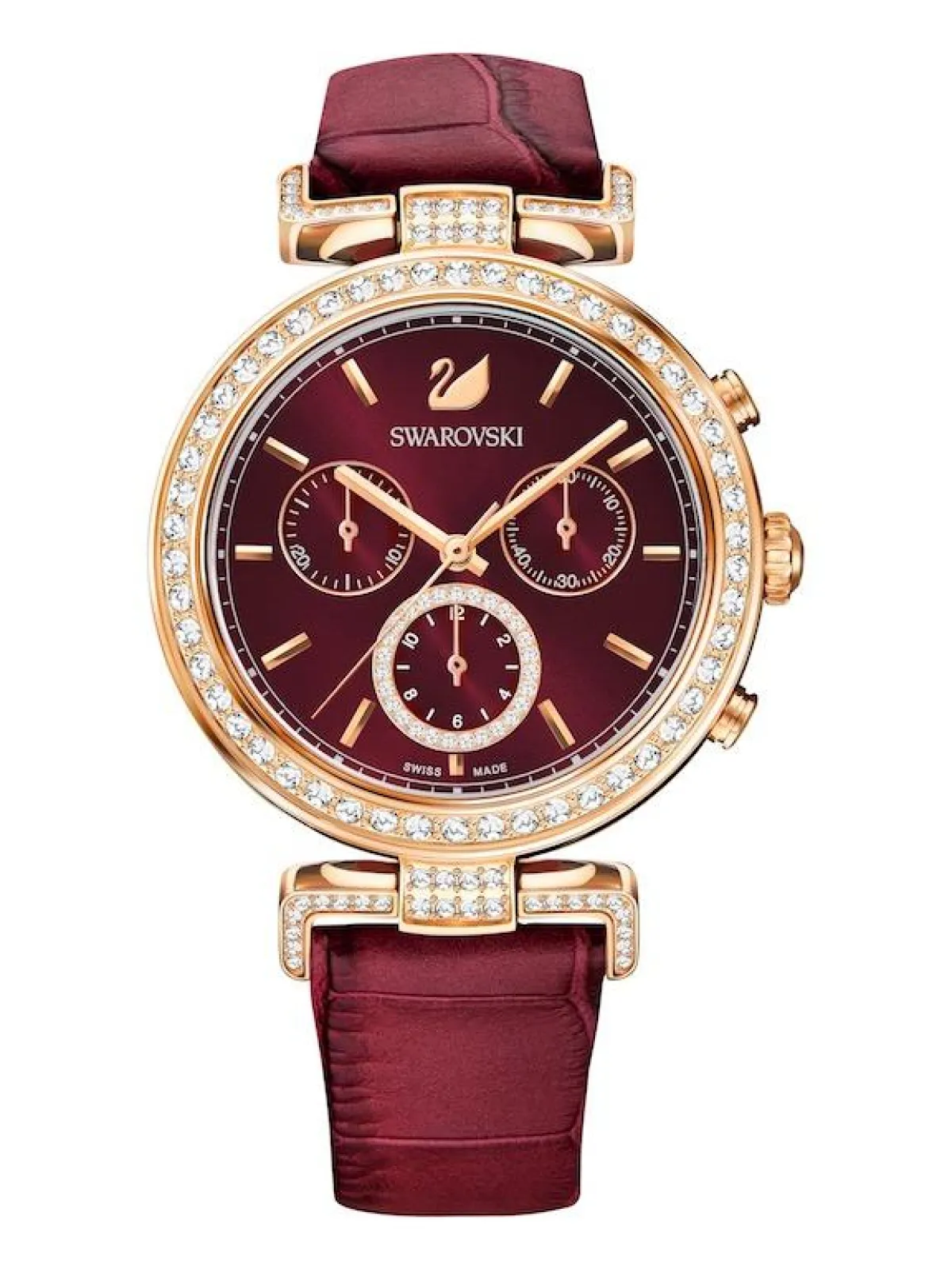 بينما ساعة Era Journey التي تمثل التوليفة المثالية بين الطابع الرياضي والكونوغراف المتطور لمسة جديدة ساحرة للموسم من خلال غلاف استانلس ستيل مطلي بذهب وردي ومرصع بكريستالات سواروفسكي مع حزام جلدي بلون وردي ياقوتي.