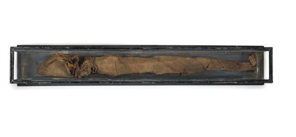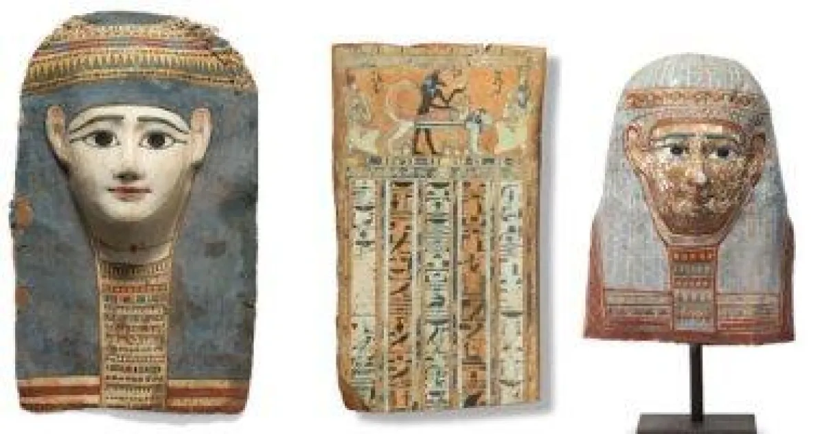 ومن الآثار المصرية القديمة الثمينة التي عرضها المزاد العلني، قناع لمومياء مصرية من العصر الرومانى، يعود تاريخها إلى ما يقارب القرن الأول قبل الميلاد، وكانت المفاجئة لهذا القناع، بأن تم تقدير ثمنه بمبلغ تراوح ما بين 10 إلى 15 ألف جنيه إسترليني فقط، والمفاجئة الأخرى التي اعتبرها محبي الحضارة المصرية القديمة صدمة حقيقية، هو عرض أحد "بورتوريهات الفيوم"، التي تعود لامرأة من العصر الرومانى، ويرجع تاريخها إلى العصر الرومانى منذ حوالى القرن الثاني الميلادي، حيث تم تقدير ثمن هذه اللوحة التاريخية بما يترواح بين الـ3 إلى 5 آلاف جنيه استرليني فقط.