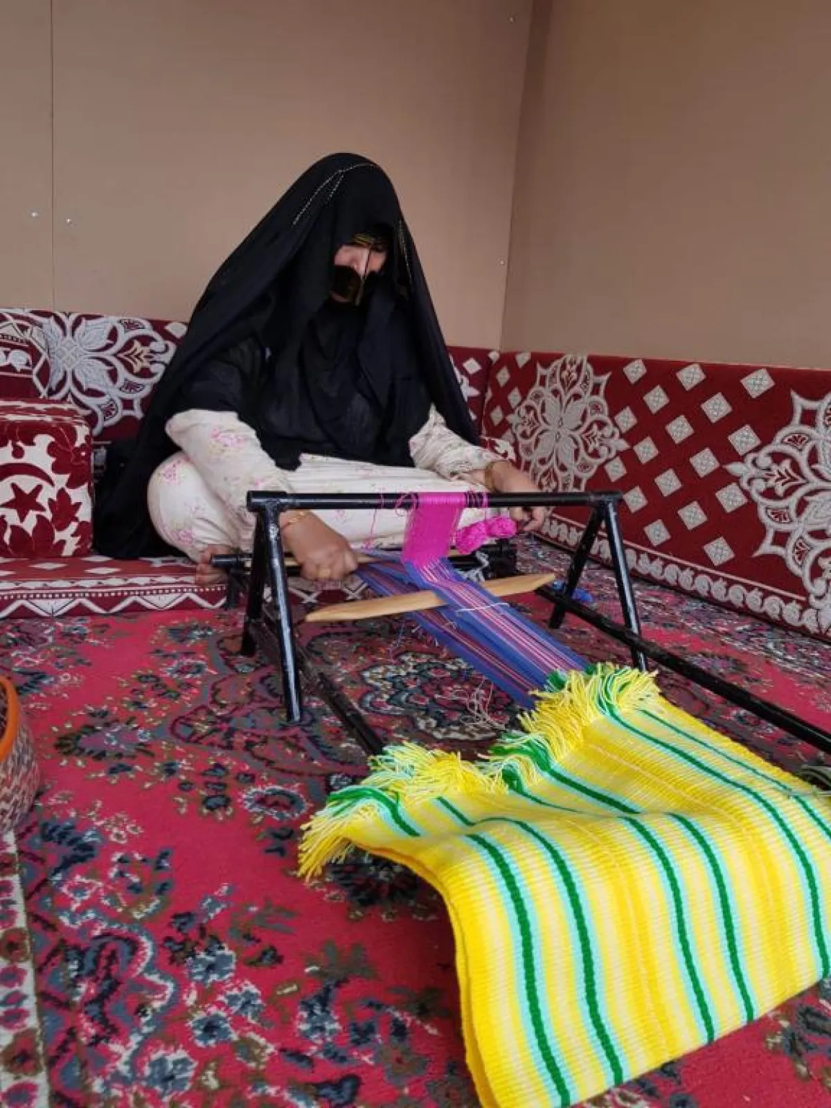 واستطردت: "منذ أن أنشأنا القسم، دربنا أعدادًا كبيرة جدًا من النساء، ولكن البارعات قليل، والمستمرات معنا حتى اليوم قلة؛ خاصةً في حرفتي السدو وأعمال النخيل لصعوبتها؛ فغالبًا ما تتقنها الكبيرات في السن، أما الفتيات لديهن ميول للخياطة والتطريز لسهولتها".