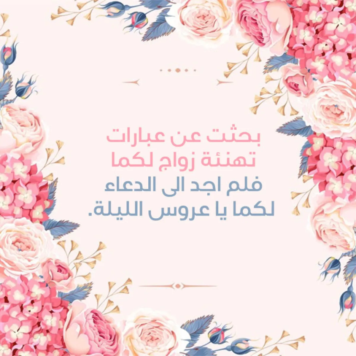 بحثت عن عبارات تهنئة زواج لكما فلم أجد إلّا الدعاء لكما يا عرسان الليلة.
