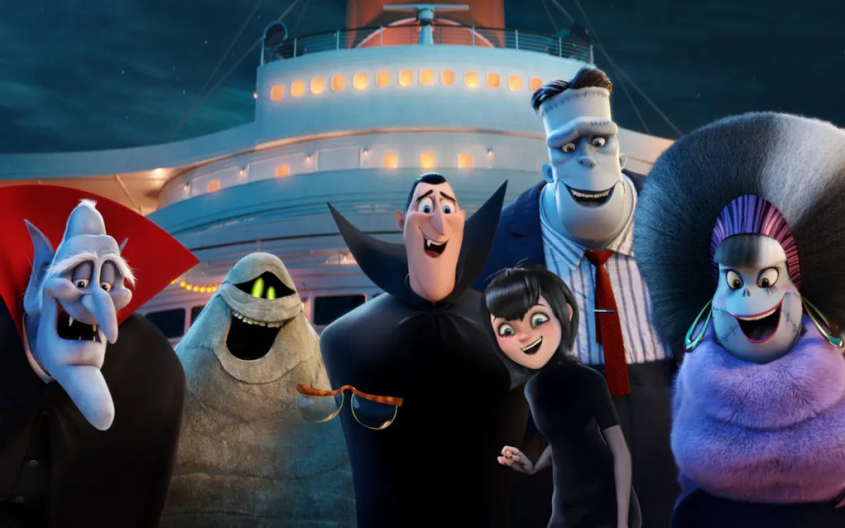 فيلم Hotel Transylvania بدأ عرضه في عام 2012 بجزئه الأول ثم صدر الجزء الثاني منه في عام 2015. وتدور أحداث الفيلم في جزئه الثّالث كامتداد لجزأيه السابقين حول قصة مصاص الدماء «دراكولا» الذي تفاجئه ابنته «مافيس» بتنظيم رحلة سياحية عائلية له بعد سنوات طويلة من العمل، وعلى متن الباخرة الفاخرة «ليغاسي» ينتاب دراكولا شعور غريب يعرّف عنه بـ«الوخذة»، فيتحول إلى رجل رومانسي بعد أن يقع في حب قبطان الباخرة الفتاة الغامضة «إريكا»، ويمضي دراكولا إجازة لا تشبه غيرها، لما يتخلّلها من مواقف ومغامرات غنية بالرّعب والفرح والضحك والمخاطرة.