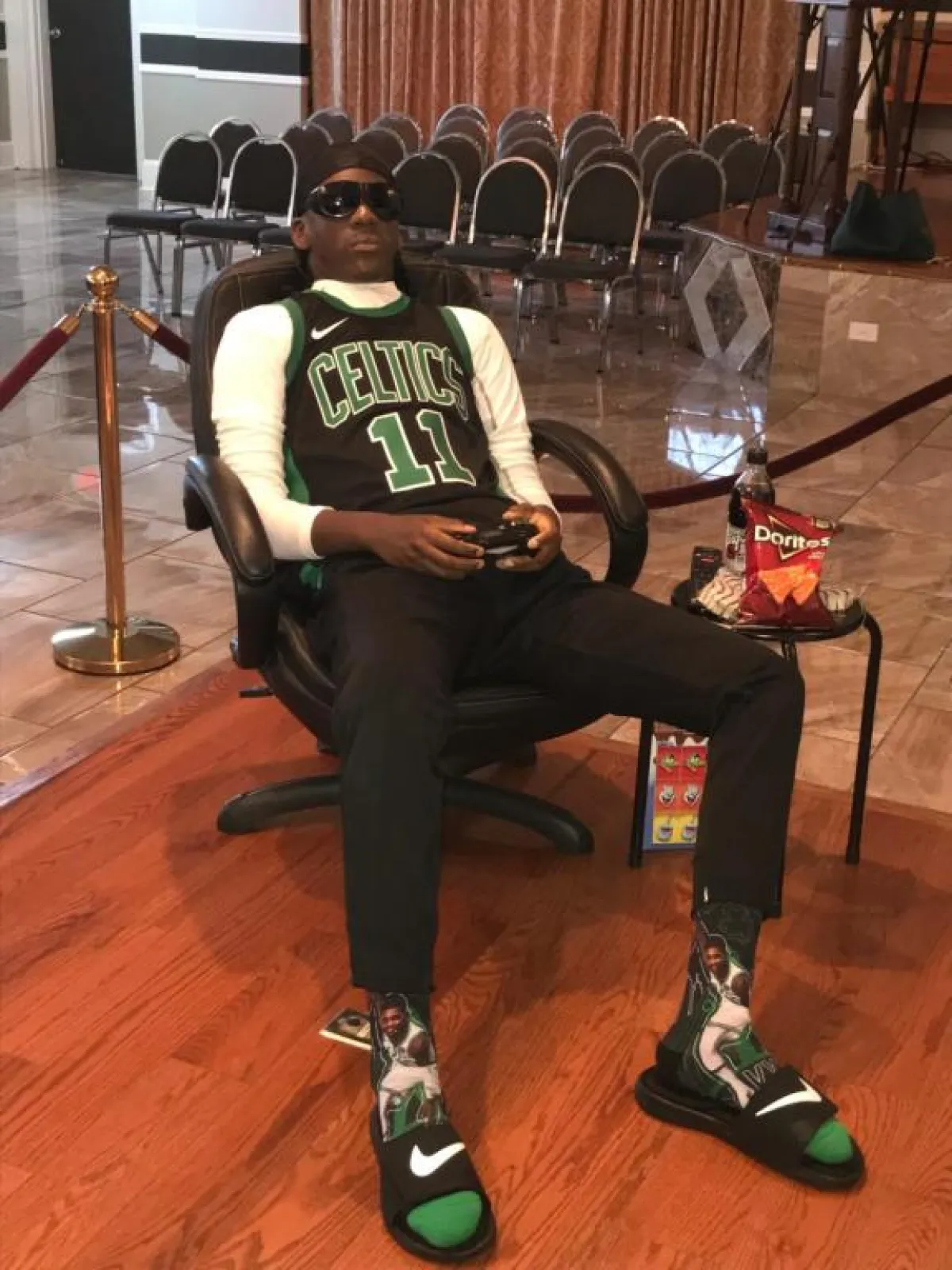 وكان "ماثيوز"، "الشاب اللطيف" بحسب ما وصفه أحد جيرانه، مُشجِّعاً مهووساً بفريق "بوسطن سيلتكس" لكرة السلَّة، وكانت عائلته قد أُلبِسَت جثَّته قميص فريق الرياضي المفضل وجوارب مماثلة، فيما كان أيضاً في مراسم الجنازة لغريبة والفريدة من نوعها، والتي أقيمت في دار جنازات "شاربوني لابات غلابيون"، تلفازٌ موجود أمام جثة "ماثيوز" يعرض مقطع فيديو لإحدى مباريات الفريق.