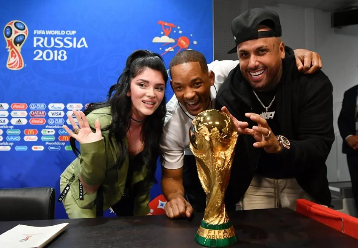 ومن جهته، نشر النجم الأمريكي "ويل سميث" عبر صفحته الرسمية على موقع التواصل الاجتماعي "فيسبوك"، مجموعة من الصور برفقة كل من "نيكي جام" و"إيرا إيستريفي" مع الكأس الذهبية، وعلق عليها قائلاً: "جائزة كأس العالم.. رائع!، قالوا لنا أننا يمكن أن ننظر، ولكن دون أن نلمس، لذلك أنا فقط أحاول عناقه، أنا أمزح بالطبع، لا أحاول أن أتسبب في حادث دولي، ليس في أول يوم لي على الأقل".