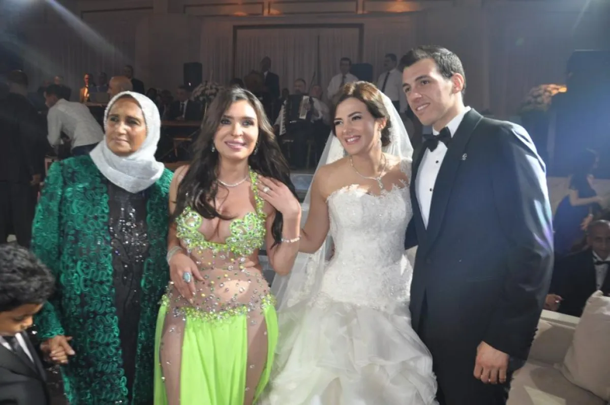 وخلال الغناء كانت دنيا ترتدي ملابس كاجوال، بينما ارتدى رامي "تي شرت" أخضر داكناً، و"شورت" أخضر فاتحاً، واستمرّا في الغناء لمدّة لا تقلّ عن ساعة. بعد ذلك، صعد الاثنان إلى أماكن تحضير ملابس الزفاف، حيث أحضرت مصمّمة الأزياء فستان الزفاف الخاصّ بدنيا. وزفّت الراقصة دينا العروسين إلى القاعة، فيما قامت الراقصتين لوسي وفيفي عبده بتقديم رقصات متنوّعة حولها. وقد أحيا الحفلة الفنّانون تامر حسني وحكيم وراغب علامة الذي حضر مباشرة عقب انتهائه من برنامجه "أراب أيدول"، خصّيصاً لإحياء الحفلة. كما حضر الزفاف ـ على غير العادة ـ الفنان العالميّ عمر الشريف الذي حيّاه حضور القاعة كثيراً. وقد شارك العروسين فرحتهما عدد كبير من نجوم الوسط الفنيّ، أبرزهم عادل إمام، محمود ياسين وزوجته شهيرة، ميرفت أمين وابنتها، ومنى زكي وأحمد حلمي، كريم عبد العزيز وزوجته، أحمد السقّا وزوجته، درّة، شريف منير، عزّة بلبع، بشرى، حسن الرداد، يسرا اللوزي، الموسيقار هاني مهني، محمود الشقنقيري، نيللي، رجاء الجداوي، ماجد الكدواني، أحمد عدوية، معتزّ الدمرداش وزوجته ووالدته كريمة مختار، هاني شاكر، المنتج أحمد السبكي، هاني رمزي وزوجته، يحيى الفخراني، عزت العلايلي، سميرة سعيد، نهال عنبر، ممدوح الليثي، خالد الصاوي، سهير زكي، أحمد المسلماني، أحمد آدم، أمينة، غسان مطر، مجدي كامل، كما حضر الحفل مجموعة من السياسيين، منهم مصطفى الفقي.