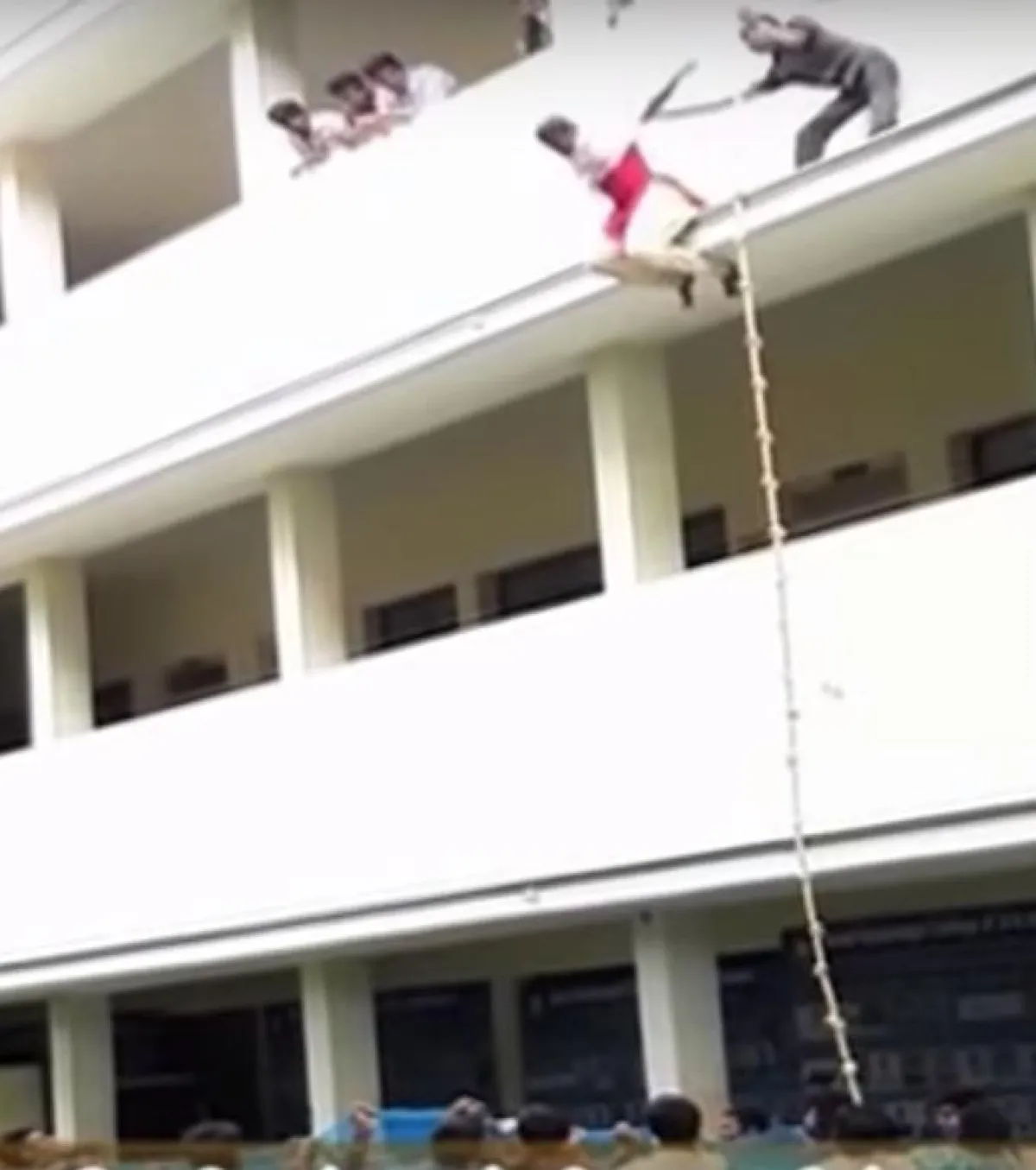 وفي التفاصيل التي نشرتها صحيفة "ديلي ميل" البريطانية، فإن الطالبة لوكيشواري لم تكن ترغب في رمي نفسها من شرفةٍ في الدور الثاني لخشيتها من الخطوة، على الرغم من أن مجموعة كبيرة من زملائها، كانوا في انتظارها في الأسفل، يحملون بأيديهم شبكة مخصَّصة لهذا الغرض.